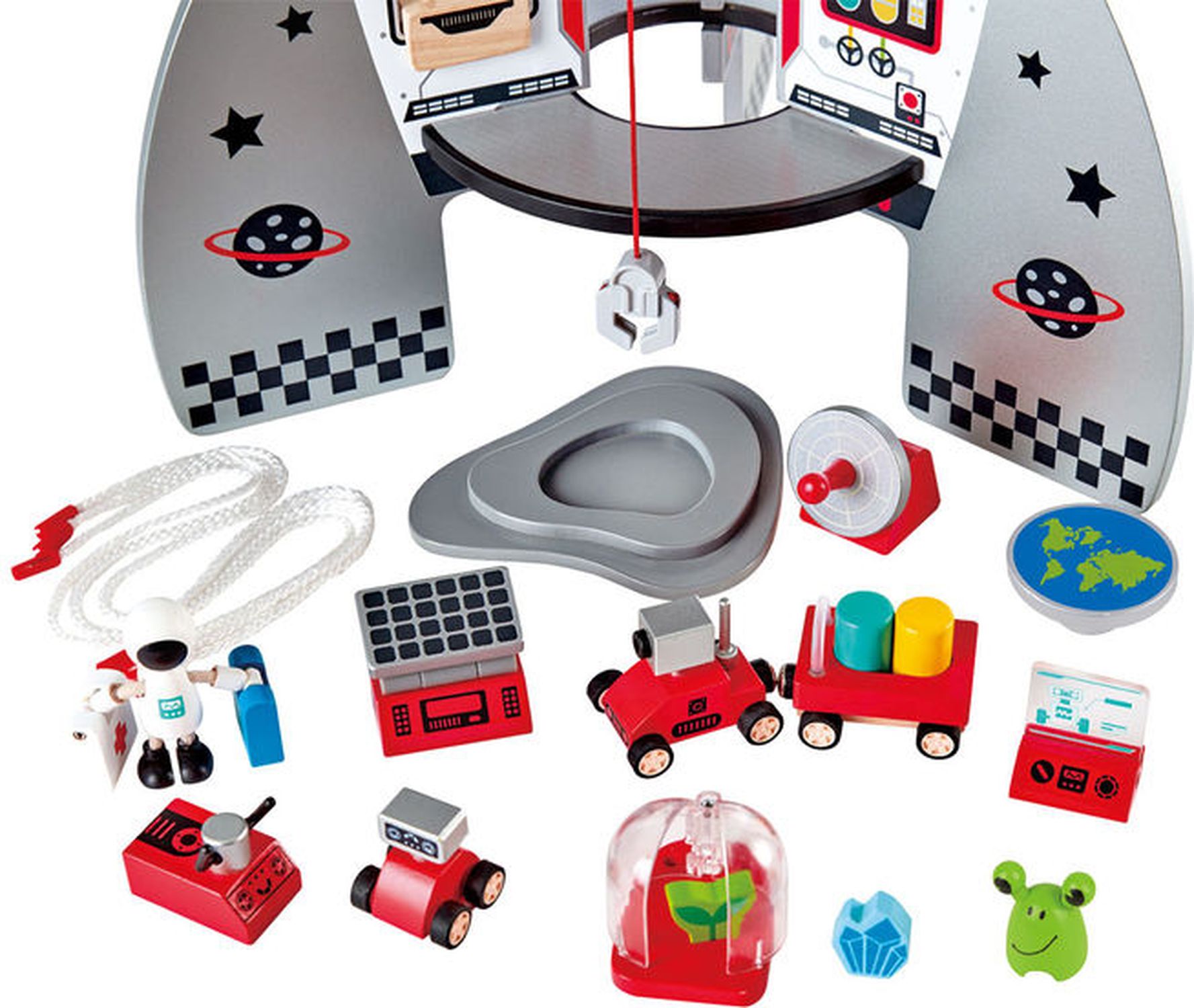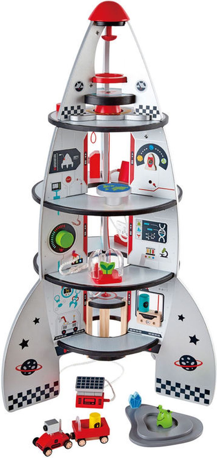 Приятные особенности:Четырехступенчатая ракета Hape- это новейшая космическая игрушка, позволяющая перенести вашего ребенка в воображаемое путешествие в дальний космос. Игрушка имеет четыре уровня детального и реалистичного дизайна, основанного на реальных космических ракетах, включая управление полетом, бортовую лабораторию, жилые помещения и тренажерный зал. Все уровни связаны между собой рабочим лифтом, поэтому астронавты могут перемещаться между уровнями в зависимости от задач.Игрушечная ракета изготовлена из качественной деревянной конструкции и отделана безопасными деталями. Игрушка очень прочная, поэтому она обязательно прослужит малышу долгие годы.Набор состоит из 20 предметов: радар, космический ровер, солнечные панели, самолета для биоэкспериментов и других устройств и аксессуаров, расширяющих возможности для космического приключения.Многоступенчатый корабль вдохновляет детей на воображение и развитие, помогает развивать воображение, творческую ролевую игру. Дети могут играть самостоятельно или с другими детьми, придумать историю космического полета, а также объяснить друг другу, что астронавты и инопланетяне могут делать на различных уровнях ракетного корабля.Деревянная игрушка космического корабля также учит моторным навыкам, так как игрушка очень интерактивна и позволяет прикреплять и отсоединять детали.Игрушка удостоена награды: Best Baby and Toddler Gear Awards 2017