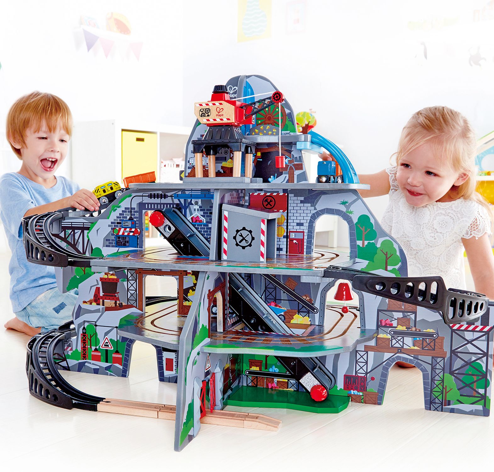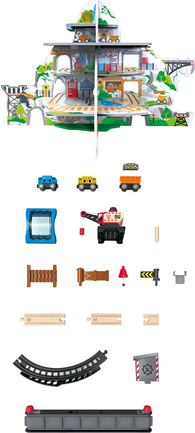 Приятные особенности:Перемещайте поезд по рельсам с верхушки могучей горы и отправляйтесь вглубь действующей шахты. Этот многоуровневый комплекс подарит много счастливых часов игры вашему ребенку и его друзьям! Набор включает в себя водопадный туннель, мост с препятствиями, строительный кран, конвейерную ленту, ремонтную станцию, а также много других интерактивных элементов.