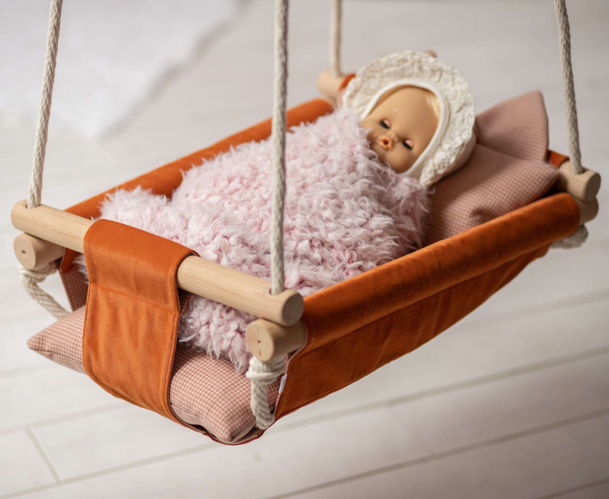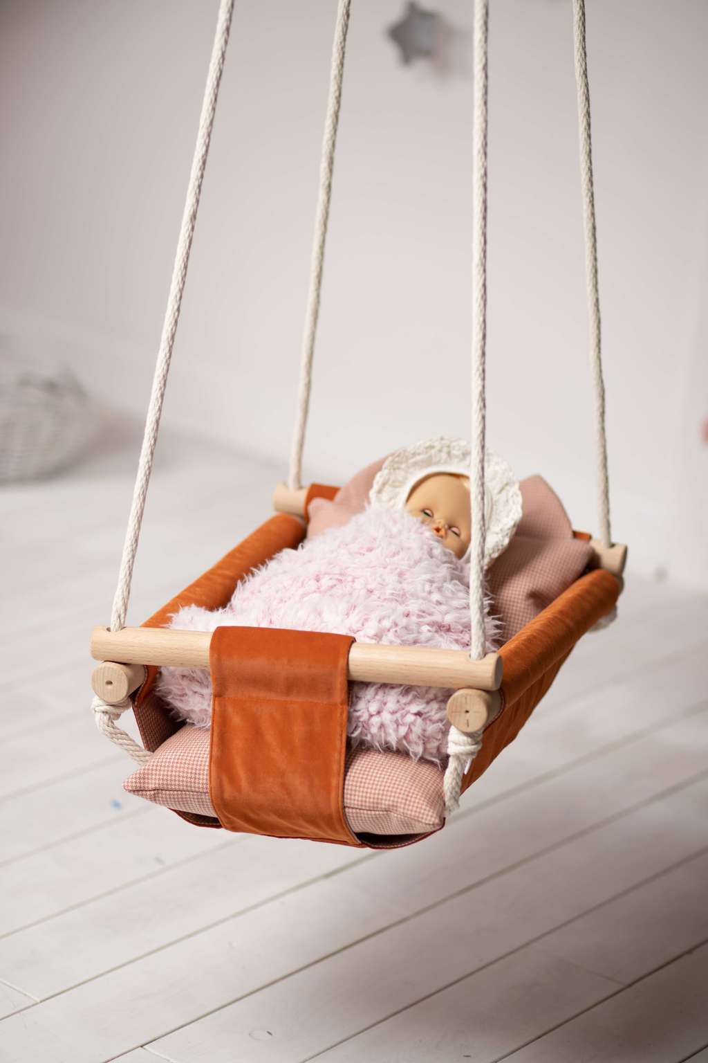 Приятные особенности:Детская качель Amari модель Люлька Лисенок в рыжем велюре с матрасиком-подушкой. Для самых драгоценных мгновений, укачивание и сон для самых маленьких от 0 месяцев, веселое времяпровождение до самых 4 х лет. Веревка для качели хб канат. Каркас массив бука, покрытие натуральный воск нагрузка 25 кг. и выше. Для монтажа потребуется отверстие в потолке. Крепеж вложен в комплекте.
