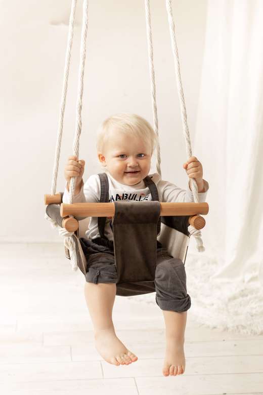 Приятные особенности:Детская качель Amari модель Крылатик Шоколад в мебельном велюре сложного коричневого оттенка. Веревка для качели хб канат. Каркас массив бука, покрытие натуральный воск нагрузка до 25 кг. Для монтажа потребуется отверстие в потолке.