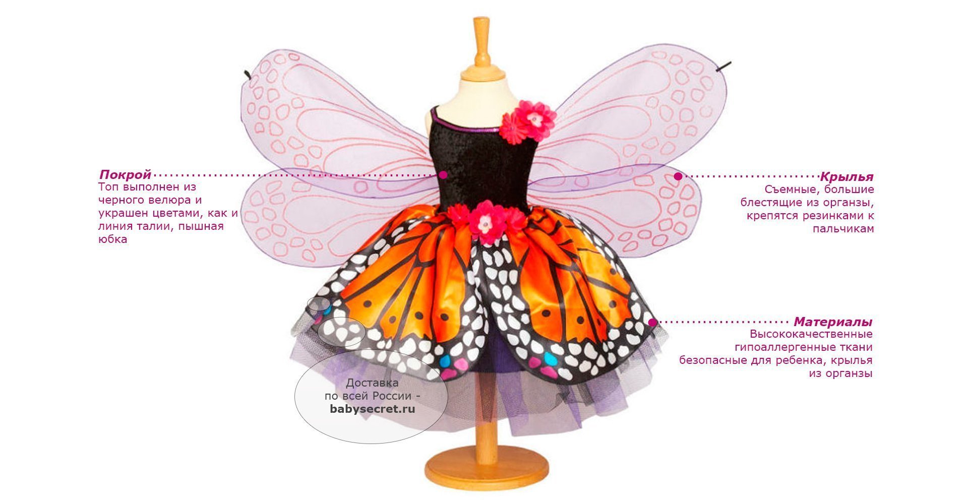 Производитель: Travis Designs (Англия) Основные характеристики: топ выполнен из черного велюра и украшен цветами, как и линия талии, пышная юбка съемные, большие блестящие из органзы, крепятся резинками к пальчикам рекомендуется машинная стирка при 40 градусах, деликатный режим Приятные особенности карнавального костюма для девочки Travis Designs Фея бабочка красный адмирал:удивительно красивое платье Фея бабочка для новогоднего или любого другого детского праздника, театрального представления, веселого карнавала. Платье отличает качественный материал, аккуратный пошив. Платье Фея бабочка позволит вашей малышке быть самой красивой девочкой на детском утреннике, бале-маскараде или карнавале. Размеры 3-5 лет: рост 98-110 см обхват груди 55-59 см талия 53-56 см Размеры 6-8 лет: рост 116-128 см обхват груди 61-67 см талия 58-60 Размеры 9-11 лет рост 123-146 см обхват груди 67-76 см талия 61-66 см Артикул: ABF3 (3-5 лет) Артикул: ABF6 (6-8 лет) Артикул: ABF9 (9-11 лет)