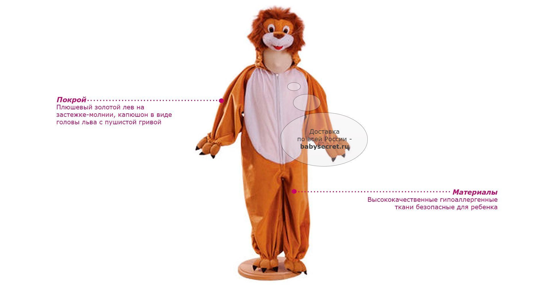 Основные характеристики: праздничный, оригинальный детский карнавальный костюм плюшевый золотой лев на застежке-молнии, капюшон в виде головы льва с пушистой гривой рекомендуется машинная стирка при 40 градусах, деликатный режим Приятные особенности карнавального костюма для мальчика Travis Designs Лев Леонард: вашему ребенку нужен новогодний костюм? Вы решили устроить костюмированный новогодний вечер? Новый год – самое время для забавных и бесшабашных затей. Новогодний карнавальный (маскарадный) костюм Лев Леонард поможет создать атмосферу праздника и сделать любую Ёлку по-настоящему веселой. Карнавальный костюм Travis Designs Лев Леонард - лучший наряд на праздник. Отлично подойдёт в подарок ребёнку. Наверняка к тем, кто придет на новогодний утренник в костюме льва, будет проявлено максимум внимания. У ребенка появится шанс выиграть приз за лучший маскарадный костюм. Размеры 3-5 лет: рост 98-110 см обхват груди 55-59 см талия 53-56 см Артикул: LION3 (3-5 лет)