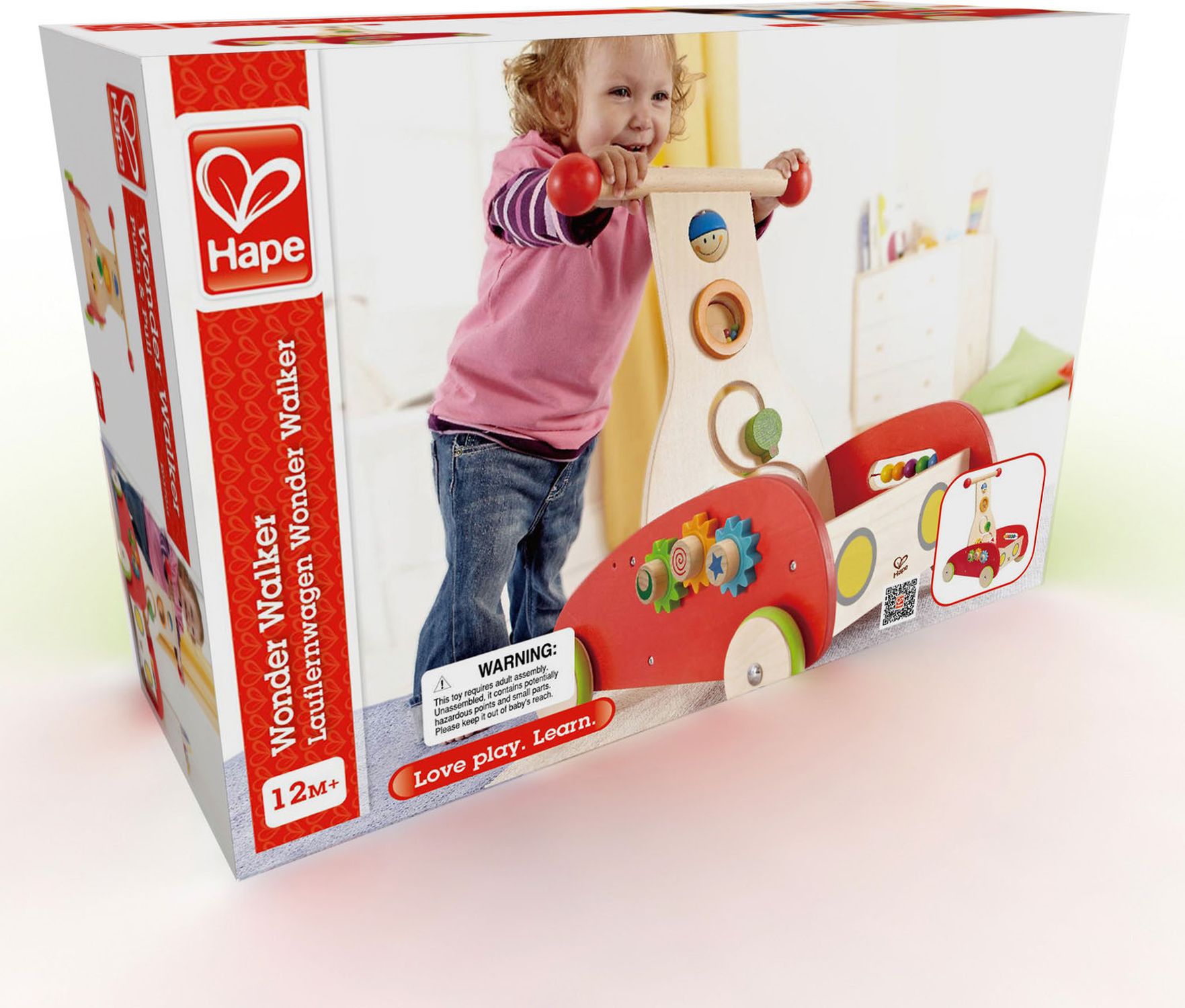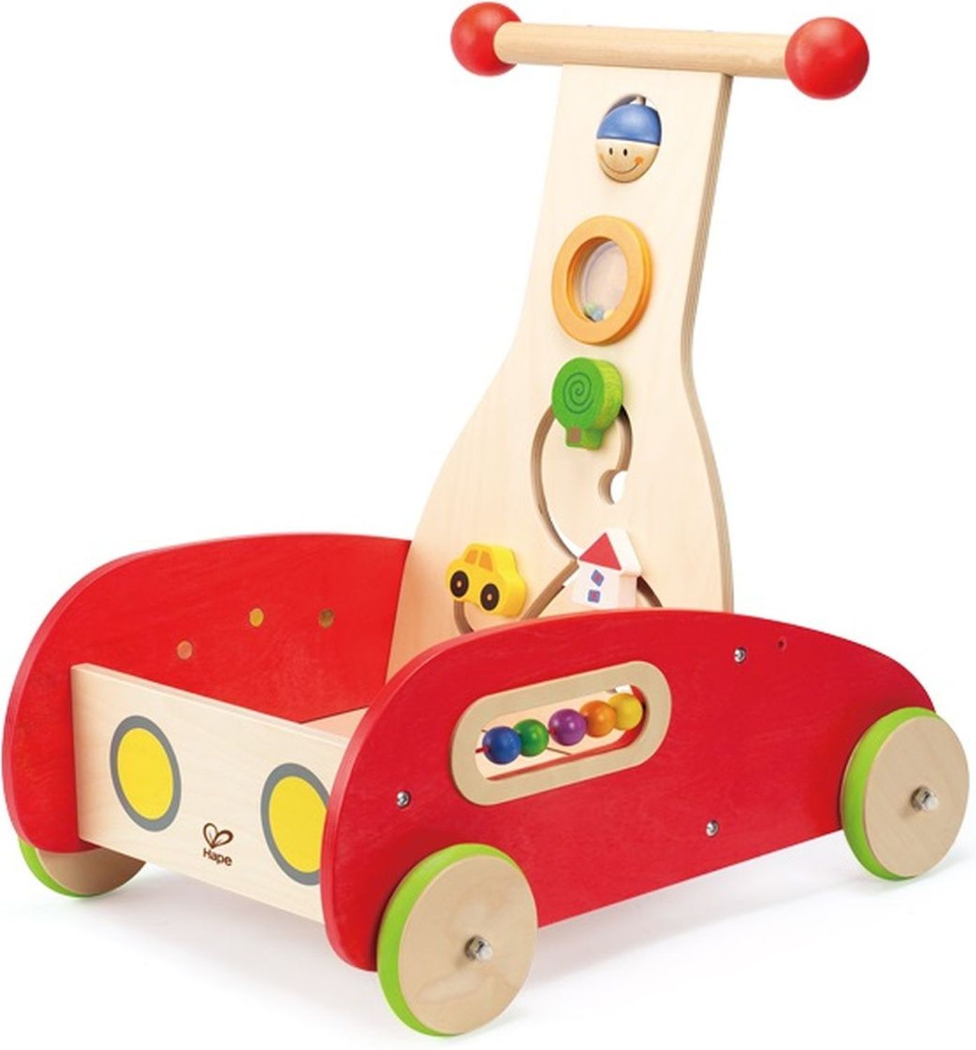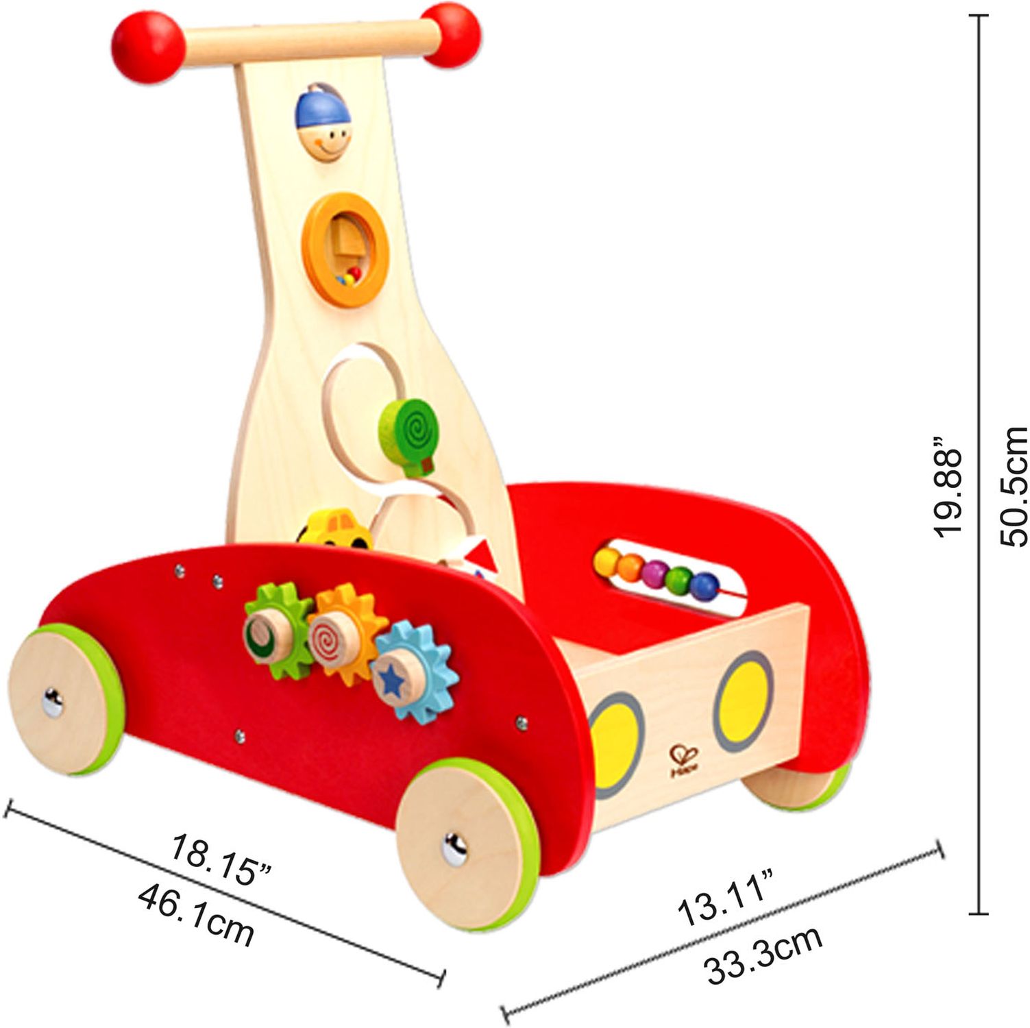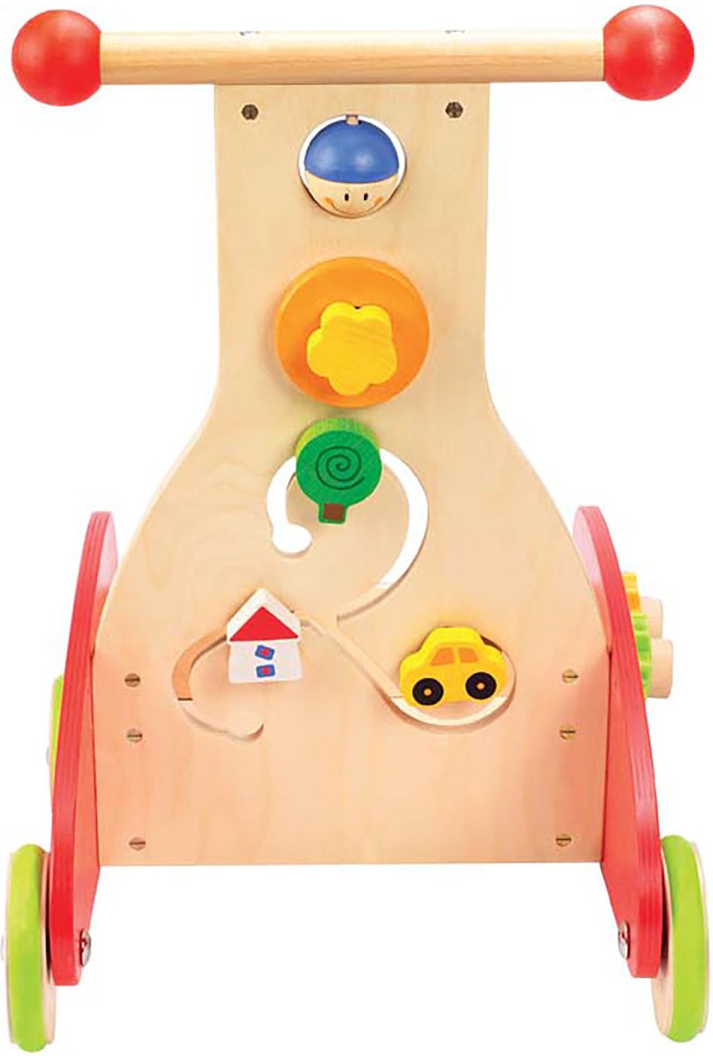 Приятные особенности:Каталка – незаменимая вещь в период обучения ходьбе, у нее есть: -удобная ручка, на которую малыш опирается с момент свершения первых шагов и до того времени как научится ходить уверенно; -яркие развивающие элементы на бортиках, приводя их в движение, малыш развивает моторику, когнитивные навыки, зрительную координацию, приходит осознание причинно-следственных связей.