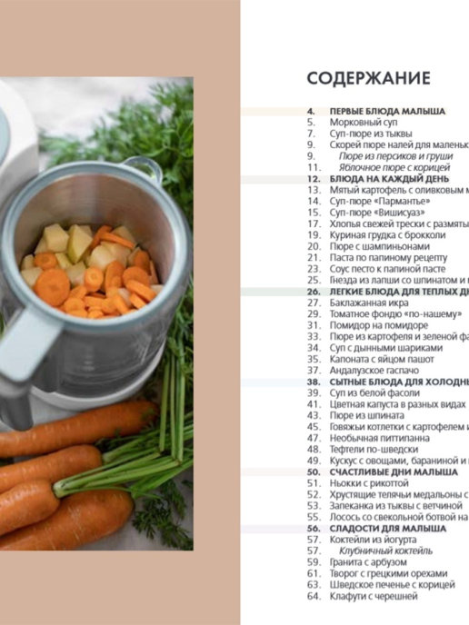 Приятные особенности:В этой кулинарной книге собраны лучшие рецепты от Beaba для детей с 5 месяцев до 2 лет. Меню для малышей гораздо интереснее и разнообразнее, чем просто «кабачок» и несколько готовых баночек из магазина. Готовить малышу своими руками не только просто и полезно, но и доставляет настоящее удовольствие. Помните, что малышковая еда, не просто строительный материал для роста и развития ребенка, но и первый шаг к взрослой гастрономии. Ребенок знакомится с разными продуктами и его организм учится понимать потребности. Разнообразное и здоровое меню, начиная с первого прикорма, настроит правильные вкусовые предпочтения ребенка. Вам не придется хитрить или обманывать, чтобы ребенок ел овощи или мясо — для него это любимые продукты.