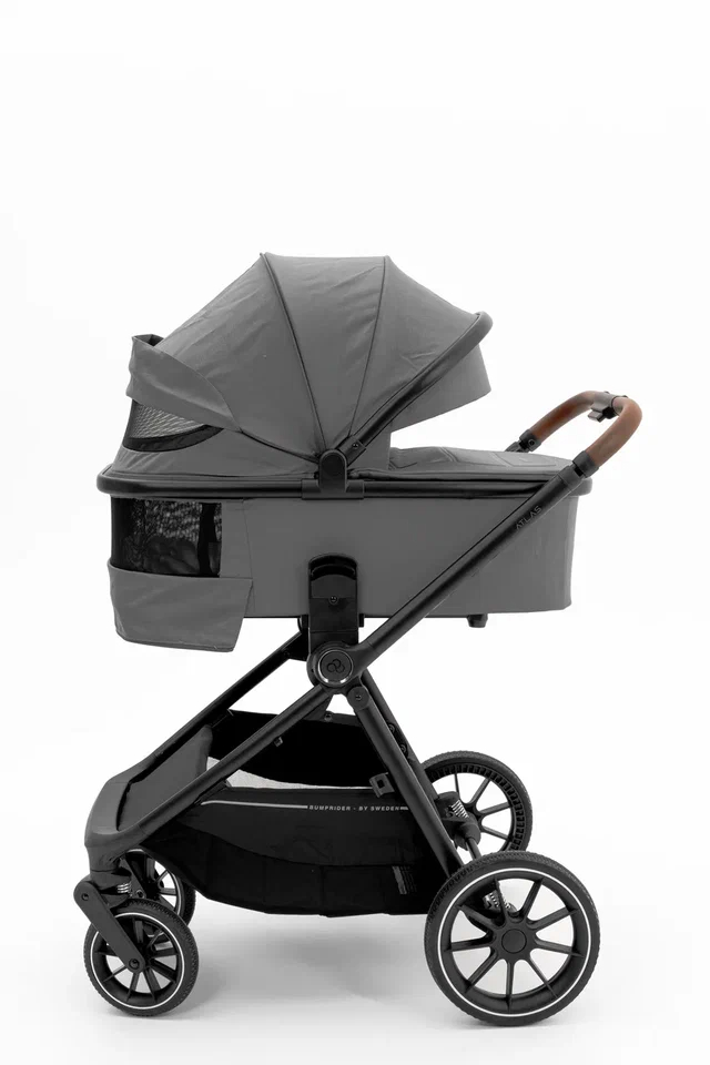 Приятные особенности: Коляска 2 в 1 Bumprider Atlass - это воплощение роскошного внешнего вида и передовых технологий, что делает коляску удобной и практичной для ежедневных прогулок. эта модель специально разработана для современных родителей, которые не хотят идти на компромисс в отношении стиля и функционала. Просторная люлька с мягким матрасиком создаст у новорождённого ощущение нахождения у мамы на руках. Для защиты от солнца и ветра капюшон можно расширить, а для дополнительной циркуляции воздуха предусмотрена вентиляция капора и изголовья. Люлька компактно складывается, что облегчает хранение и транспортировку. Уникальность коляски в высоком расположении люльки и сиденья, что обеспечивает оптимальную близость и контакт между родителем и ребенком. Телескопическая ручка регулируется на несколько положений по высоте, создавая комфорт на прогулках и невысокой маме, и высокому папе. Объемный складной капюшон оснащен защитой UPF50 +, который может быть расширен для максимальной защиты малыша в солнечные дни. Конструкция сиденья пБлагодаря большим непрокалываемым колесам Bumprider Atlas подходит как для городских условий, так и для более сложного бездорожья. Легкость шасси обеспечивает непревзойденную маневренность, что превращает каждую прогулку в удовольствие. При помощи адаптеров (входят в комплект) на шасси можно устанавливать автокресло группы 0+.озволяет легко переводить спинку из сидячего положения в полностью горизонтальное, а регулируемая подставка для ног создает дополнительный комфорт и увеличивает спальное место. Защитный бампер откидывается в сторону, облегчая посадку и высадку ребенка.