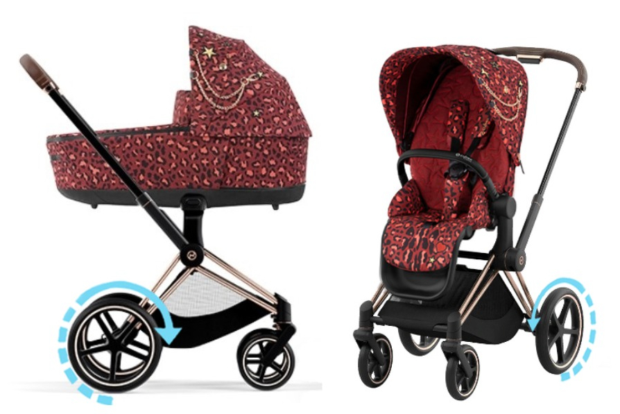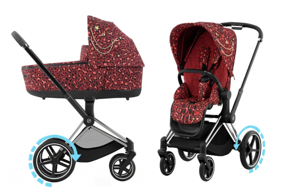 Приятные особенности: Коляска 2 в 1 Cybex PRIAM IV FE Rockstar коллекции Cybex Rockstar от Alec Voelkel объединяет в себе новейшие инновации, исполнение и опыт из мира ювенала и мира музыки. В результате сотрудничества Cybex и немецкого музыканта Алека Фолькеля, вдохновленного рождением его дочери, Rockstar сочетает в себе высочайшие стандарты производительности Cybex с выдающимся дизайном, вдохновленным миром рок-музыки, с тканями с леопардовым принтом, золотыми деталями, стеганым шитьем и аппликациями в форме звезд. Новая усовершенствованная люлька версии Priam IV стала еще комфортнее! Просторные размеры позволяют использовать люльку в любое время года. Мягкая обивка из хлопка идеально подходит для нежной детской кожи. Ручка для переноса теперь встроена в капюшон. Благодаря ножкам вы можете использовать люльку на ровных поверхностях. Также обновленная люлька оснащена не только сеточкой в капюшон, но и сеткой в изголовье люльки, что особенно актуально в жаркие летние дни.