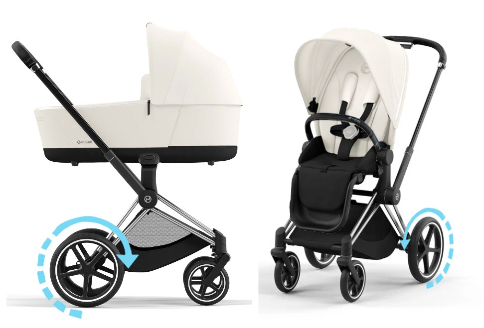 Коляска CYBEX e-PRIAM делает жизнь с вашим малышом еще более приятной и легкой. Функция укачивания e-PRIAM поможет вам успокоить малыша и уложить его спать в любое время и в любом месте. Электроколяска движется вперед-назад, создавая мягкое покачивание. С интеллектуальной поддержкой e-PRIAM ходьба в гору становится легкой. Бортовые датчики определяют наклон и подают сигнал электродвигателям для увеличения мощности, благодаря чему подъемы и спуски становятся легкими. Представьте себе свободу передвижения по бездорожью, когда захотите. Поддержка e-PRIAM на неровной поверхности позволит Вам преодолевать неровности и чувствовать легкость.