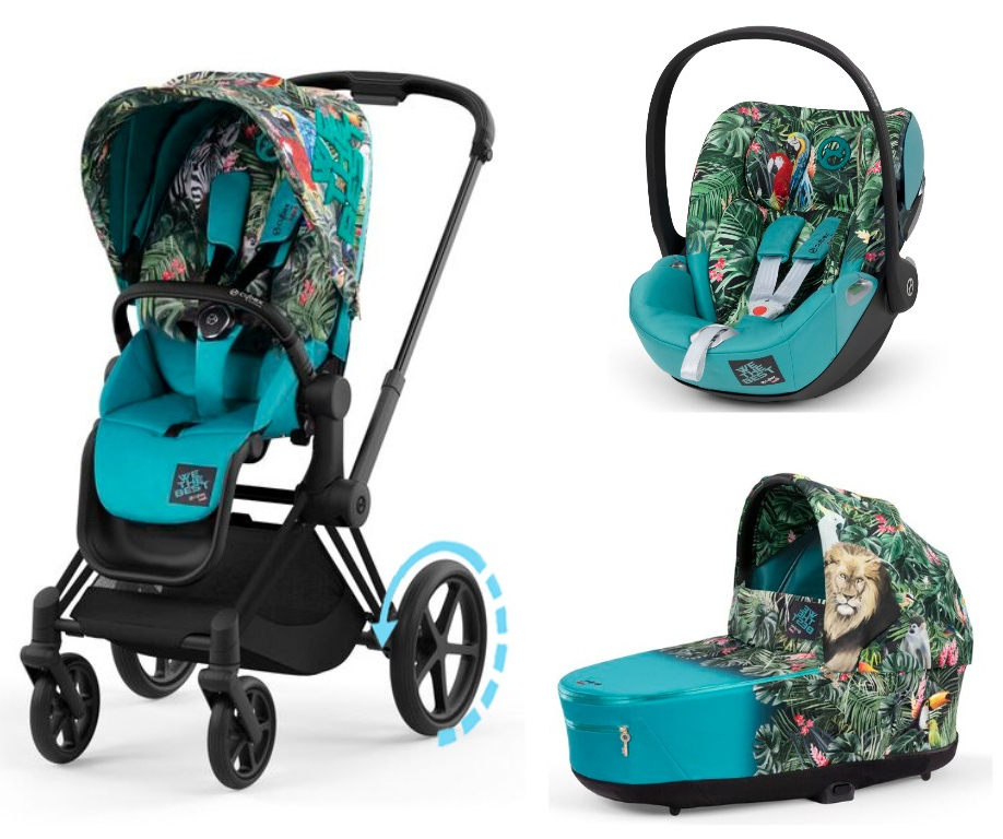 Приятные особенности: Коляска 3 в 1 Cybex PRIAM IV FE DJ Khaled WE THE BEST является лимитированной серией. Музыкальный магнат, обладатель премии Грэмми DJ Khaled считает, что семья всегда на первом месте. Вместе со своей женой Николь, вдохновленный их двумя маленькими сыновьями, DJ Khaled разработал коллекцию, которая отражает богатую красоту тропических джунглей и экзотический животный мир ярких львов, попугаев и зебр. На каждом изделии красуется индивидуальный логотип «We the Best», а символический ключ на молниях олицетворяет суть успеха и «ключей к королевству» — семью, изобилие и любовь. Детская коляска Cybex Priam IV– обновленная версия одной из самых популярных колясок в сегменте премиум. В новом исполнении люлька для новорожденных Cybex имеет увеличенные размеры и обладает панорамным сетчатым окном в изголовье. Прогулочный блок получил более удобный и правильный с точки зрения распределения нагрузки механизм раскладывания, а также большое вентиляционное отделение в капюшоне Коляска может использовnься как система для путешествий, а это значит, что её можно использовать прямо с рождения малыша и до возраста примерно 4 года, когда вес ребенка достигнет 22 килограмм. Priam IV отличается своим маневренным и удобным шасси, на которое можно установить различные компоненты (спальный блок, прогулочный блок или автокресло группы 0+), в зависимости от возраста ребенка или условий прогулки.