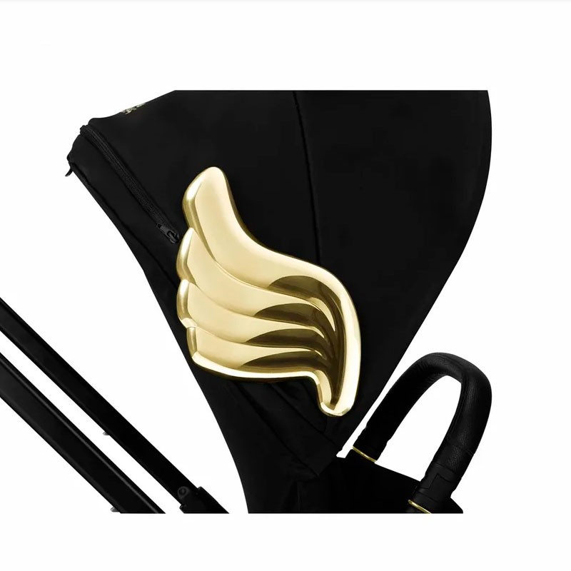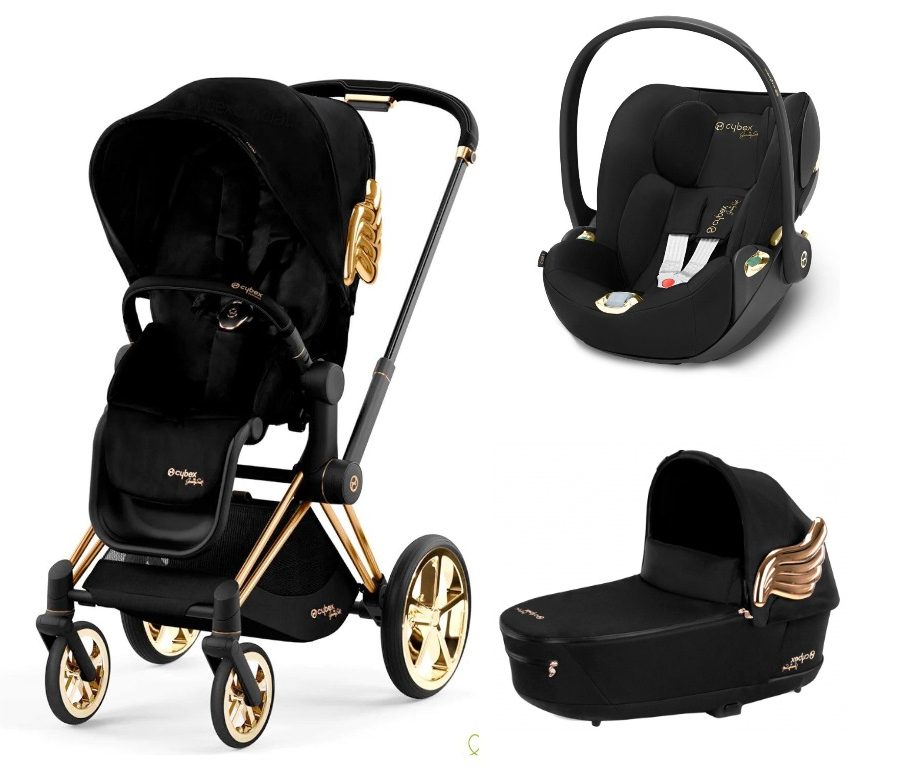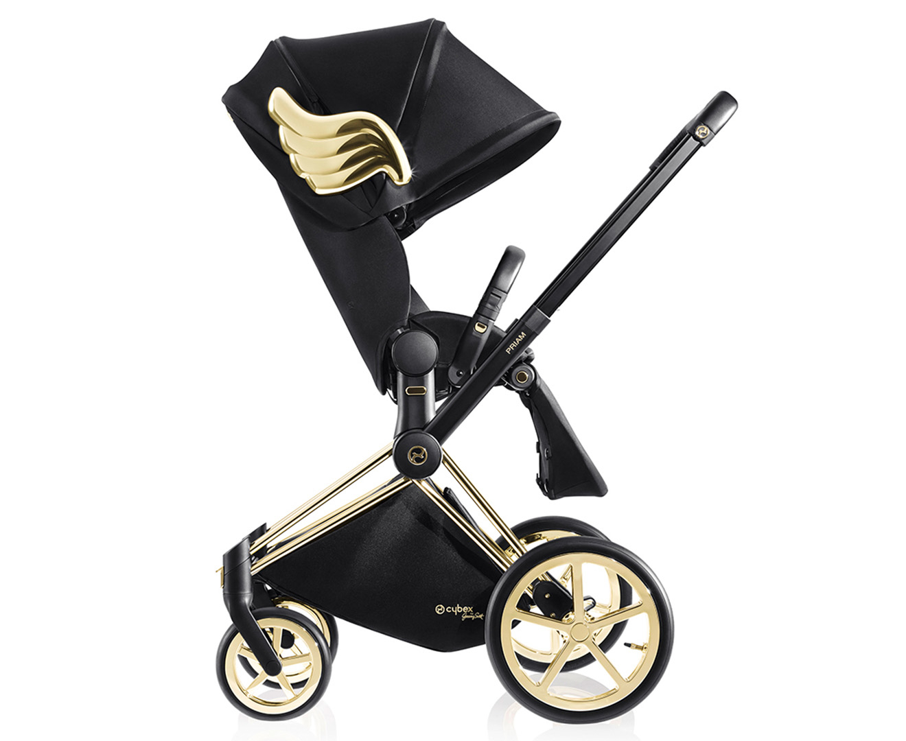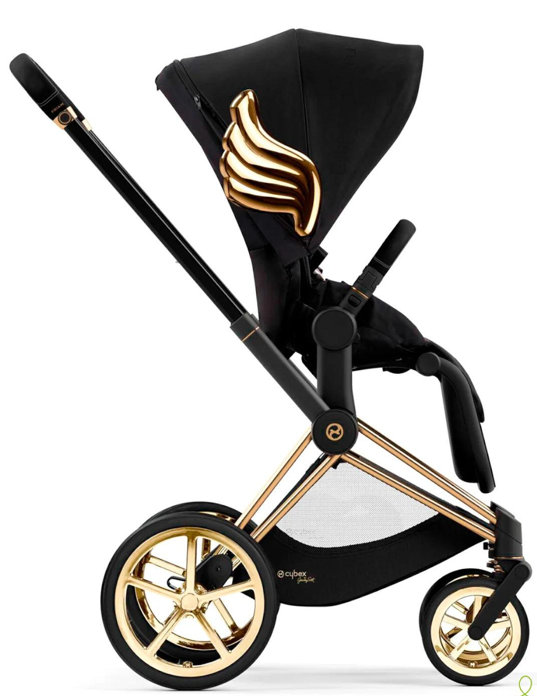 Приятные особенности: Люлька Cybex Priam IV Jeremy Scott Wings является капсульной коллекцией JS WINGS. Коронные золотые крылья ярко выделяются на фоне классического черного цвета коллекции. Путешествия по всему миру, поездки по магазинам или встречи с друзьями в местных модных заведениях – все это легко осуществимо с творениями CYBEX и Джереми Скотта. Коляска Priam является бриллиантом платиновой коллекции CYBEX. Шасси коллекции PRIAM от Джереми Скотта выполнено в элегантном золотом цвете с колесами trekking с блестящими золотыми спицами и, конечно, с коронными золотыми крыльями на люльке и сидении Lux. Детская коляска Cybex Priam IV– обновленная версия одной из самых популярных колясок в сегменте премиум. В новом исполнении люлька для новорожденных Cybex имеет увеличенные размеры и обладает панорамным сетчатым окном в изголовье. Прогулочный блок получил более удобный и правильный с точки зрения распределения нагрузки механизм раскладывания, а также большое вентиляционное отделение в капюшоне. Коляска может использоваться как система для путешествий, а это значит, что её можно использовать прямо с рождения малыша и до возраста примерно 4 года, когда вес ребенка достигнет 17 килограмм. Priam IV отличается своим маневренным и удобным шасси, на которое можно установить различные компоненты (спальный блок, прогулочный блок или автокресло группы 0+), в зависимости от возраста ребенка или условий прогулки.