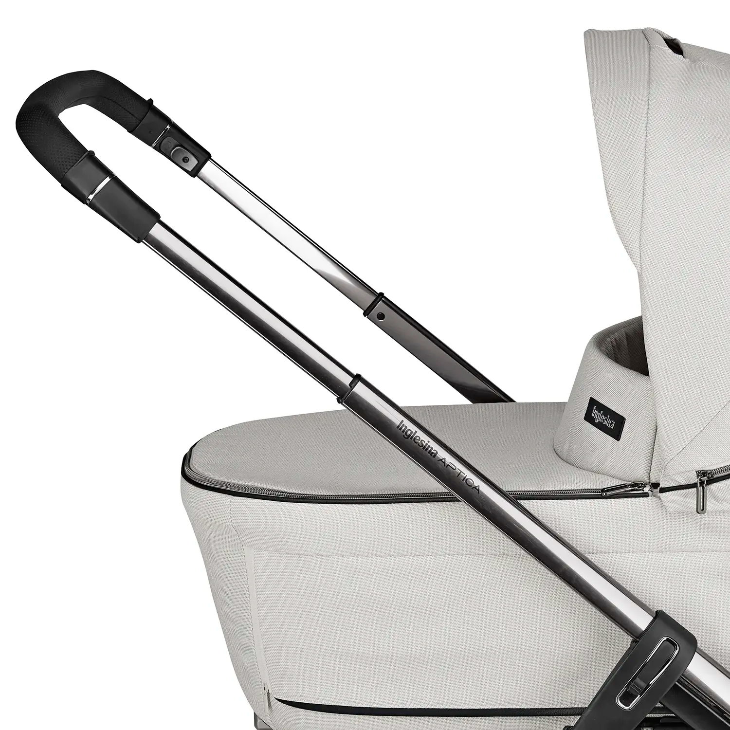 Приятные особенности :Коляска 3 в 1 Inglesina Electa System Quattro состоит из просторной люльки, складного прогулочного блока и фирменного автокресла Inglesina. Все основные элементы люльки - дышащая обивка, перфорированное дно, секция с антимоскитной сеткой в капоре, обеспечивают комфортный внутренний температурно-влажностный режим. Герметичная накидка на ножки в цвет модели надежно защищает от холода и ветра, она имеет непромокаемую застежку на молнии, высокий защитный бортик по всей ширине корпуса. После достижения малышом полугода люльку нужно сменить на всесезонную прогулку. Благодаря продуманной конструкции и экипировке она будет удобной и вместительной в любое время года. Двухслойная однотонная ткань чехла, кожаная обивка ручки управления и бампера, накидка в тон модели на кнопках, сатинированная родительская ручка – внешнее оформление прогулки подчеркивает премиальный уровень модели. Высокий капюшон обеспечивает постоянный приток воздуха внутрь салона, защиту от непогоды. В край капора вшит жесткий складной козырек от солнца, в верхней части есть сетчатое окошко с клапаном, которое обеспечивает постоянный контроль поведения малыша, усиленное проветривание в жару.