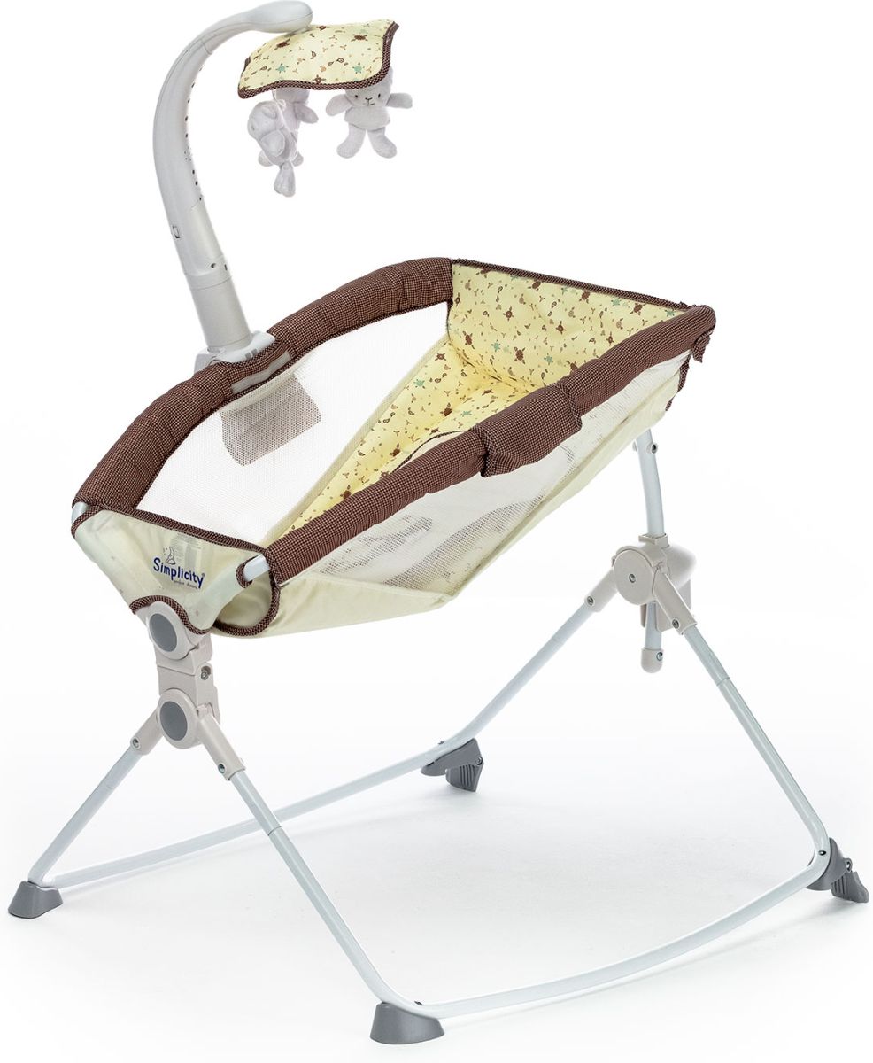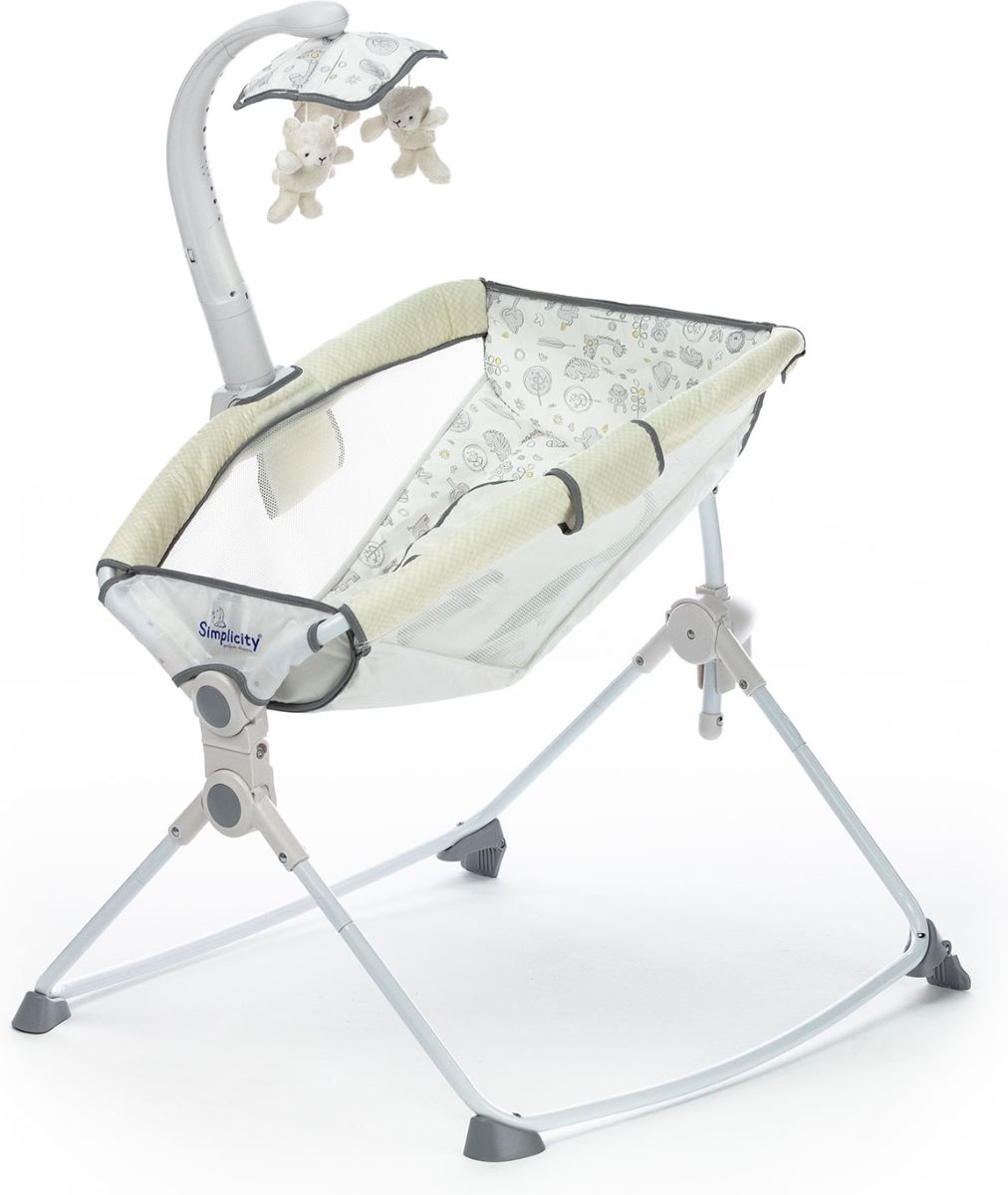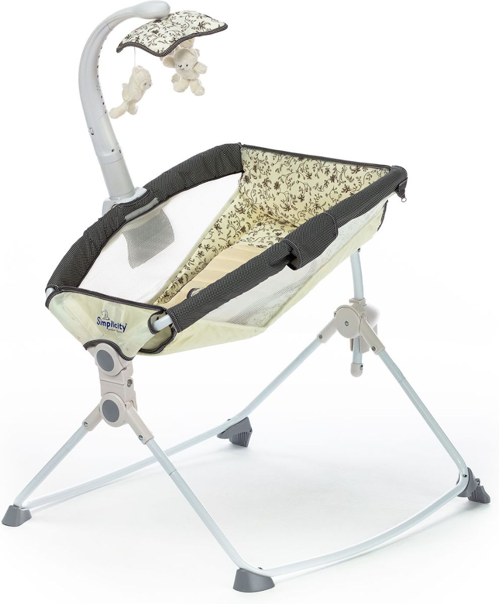 Приятные особенности :Simplicity 27404M – это уютная и мобильная колыбель, которая создана для комфортного сна новорожденного и незаменима для поездок и путешествий. Компактная легкая люлька позволит родителям в любом месте создать полноценное спальное место, обеспечив малышу безмятежный сон.Колыбель имеет анатомически правильное основание. Необходимую жесткость обеспечивает специальная пластиковая вставка под чехлом. Для дополнительного комфорта малыша предусмотрен мягкий вкладыш, идеально повторяющий форму тела ребенка. Сетчатые вставки по бокам служат для хорошей циркуляции воздуха, а изогнутые (дугообразные) ножки удобны для плавного качания. Нежный режим вибрации поможет малышу расслабиться, а колыбельные мелодии подарят ему спокойный сон.Благодаря компактному размеру, колыбель не займет много места в вашей квартире, а легкость складывания позволит без труда перевозить ее в багажнике даже небольшого автомобиля.