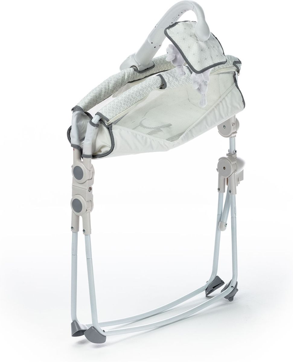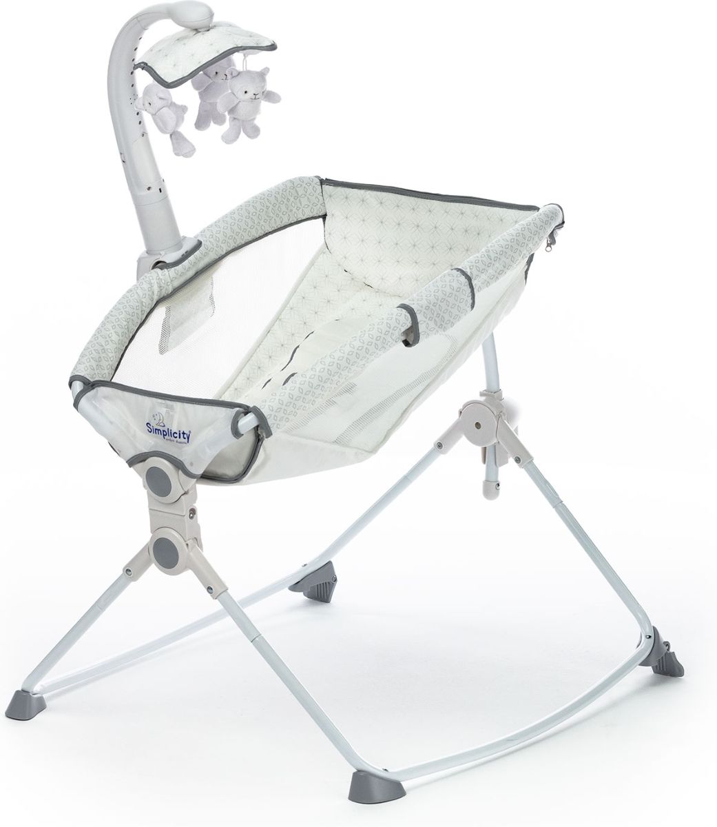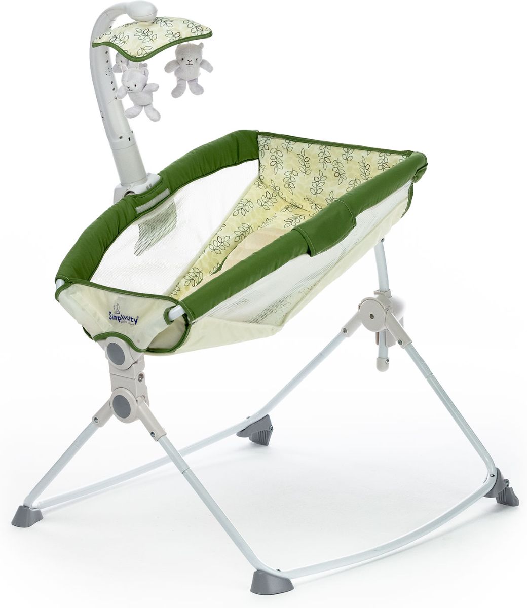 Приятные особенности :Simplicity 27404M – это уютная и мобильная колыбель, которая создана для комфортного сна новорожденного и незаменима для поездок и путешествий. Компактная легкая люлька позволит родителям в любом месте создать полноценное спальное место, обеспечив малышу безмятежный сон.Колыбель имеет анатомически правильное основание. Необходимую жесткость обеспечивает специальная пластиковая вставка под чехлом. Для дополнительного комфорта малыша предусмотрен мягкий вкладыш, идеально повторяющий форму тела ребенка. Сетчатые вставки по бокам служат для хорошей циркуляции воздуха, а изогнутые (дугообразные) ножки удобны для плавного качания. Нежный режим вибрации поможет малышу расслабиться, а колыбельные мелодии подарят ему спокойный сон.Благодаря компактному размеру, колыбель не займет много места в вашей квартире, а легкость складывания позволит без труда перевозить ее в багажнике даже небольшого автомобиля.