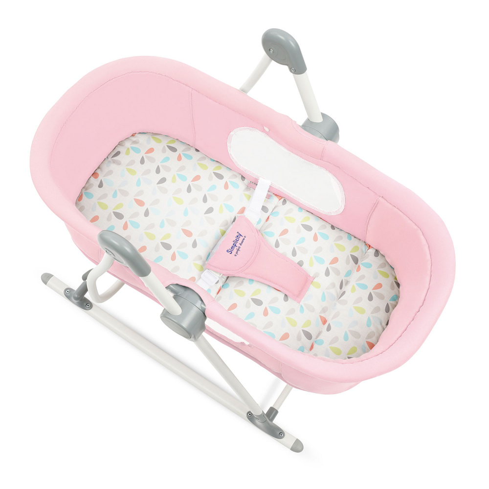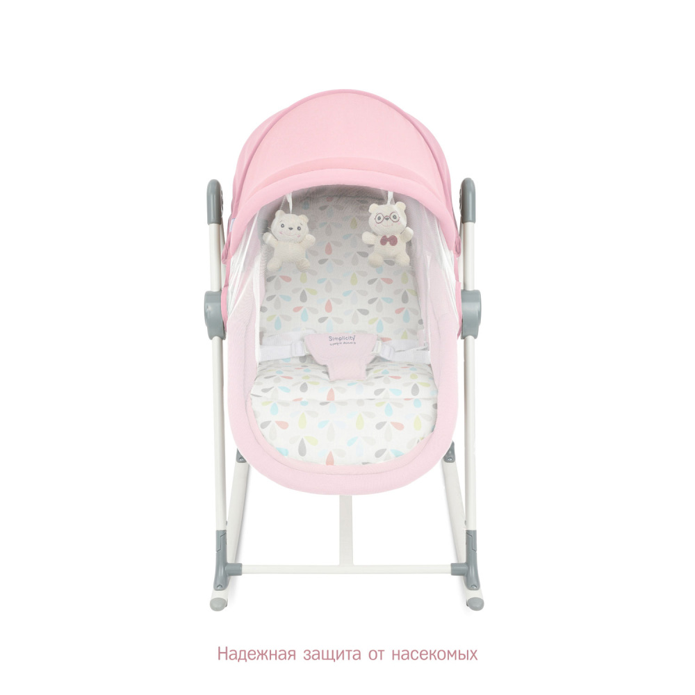 3-4. Шезлонг и Качалка. По мере взросления малыша колыбель Simplicity 299777 Elite можно трансформировать в шезлонг-качалку для новорожденных. На выбор предлагается 3 варианта положения спинки: лежа, полулежа и сидя. Для предотвращения выскальзывания ребенка в комплекте предусмотрены ремни безопасности с тканевым разграничителем для ножек.