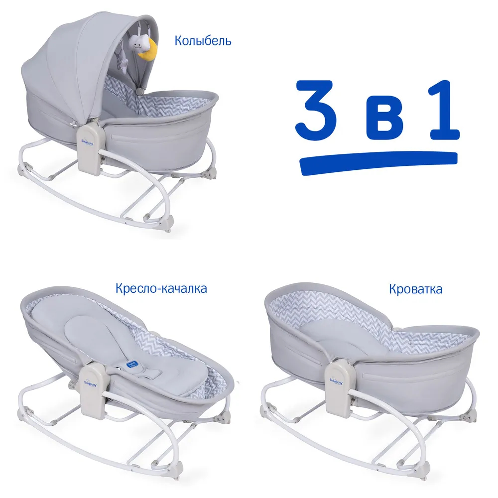 Приятные особенности:Колыбель Simplicity 3010 Elite -это современная и универсальная колыбель-трансформер для новорожденного, которая предназначена для сна ребенка и бодрствования (трансформер в режиме «кресло-качалка»). Поэтому колыбель пригодится с первых дней жизни малыша и до 6-ти месячного возраста.