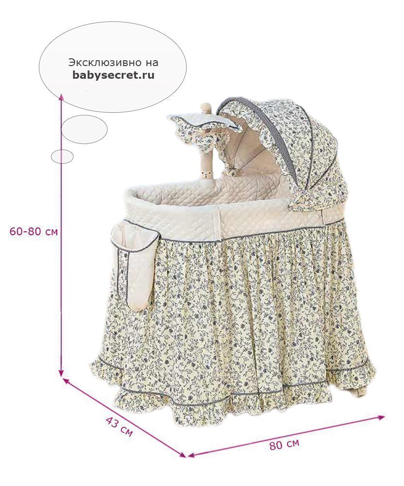 Размер колыбели: 80x43x24 см Высота от пола: до 1 уровня60 см до 5 уровня80 см Вес: 8 кг