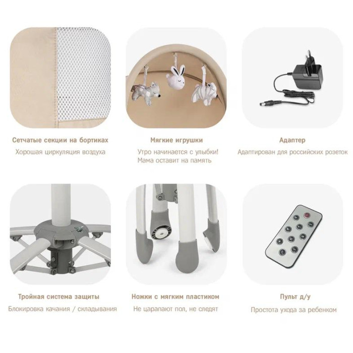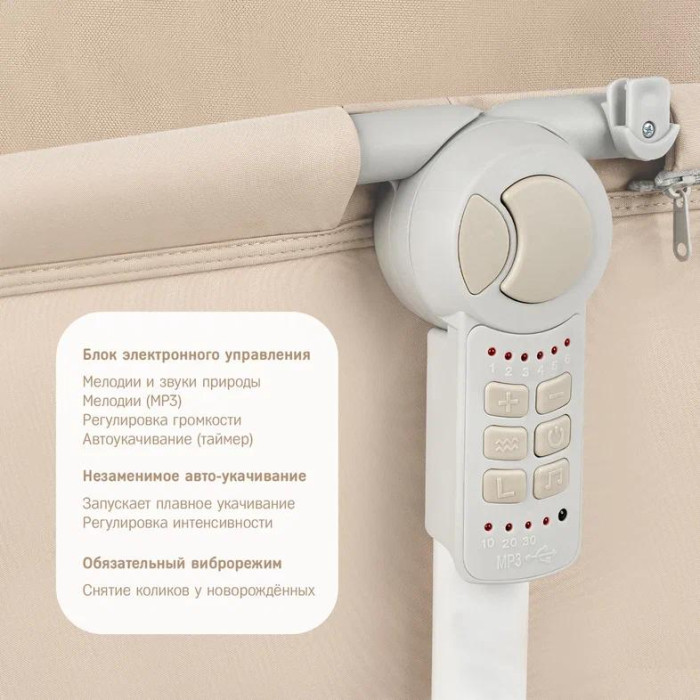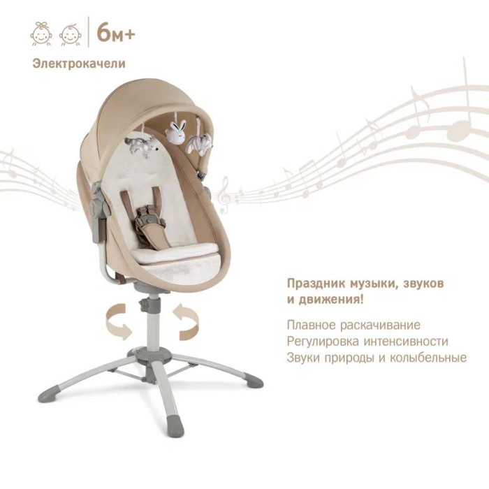 3. Электрокачели. С их помощью можно устроить настоящий праздник для новорожденного, включив одновременно качание и встроенные мелодии. Для предотвращения выскальзывания ребенка в комплекте предусмотрены ремни безопасности с тканевым ограничителем для ножек.