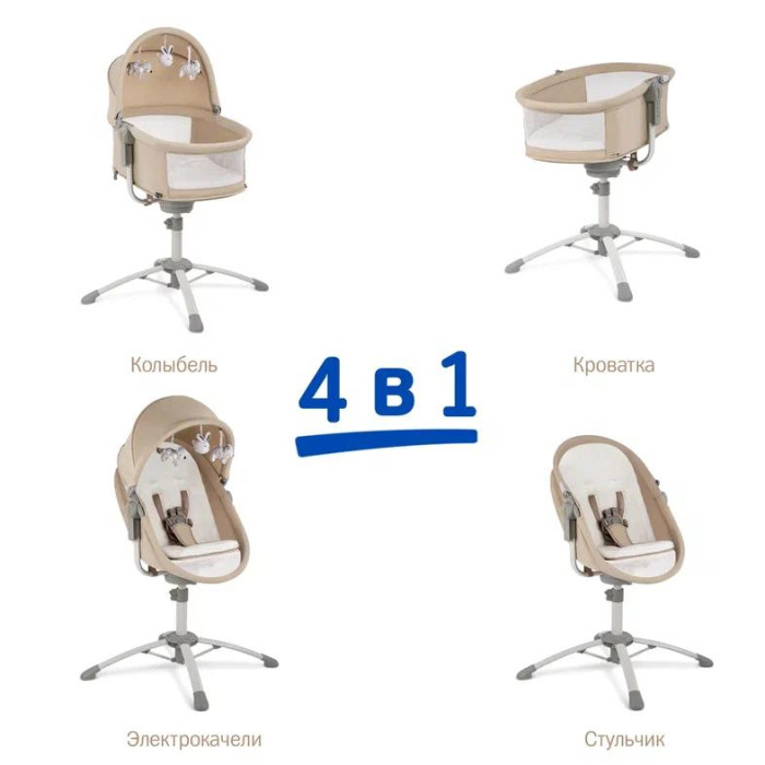 Основные характеристики:Колыбель Simplicity 5010 Elite - это ультрасовременная колыбель трансформер с электронной системой укачивания (4 в 1) для новорожденных, которая сочетает в себе все преимущества колыбельки для малышей, кроватки для новорожденного, электрокачелей и стульчика для кормления. Благодаря нескольким вариантам уникальной трансформации «Pull&Use» колыбель будет полезна с первых дней жизни грудничка и до 3-х летнего возраста.Колыбель имеет 4 варианта использования: