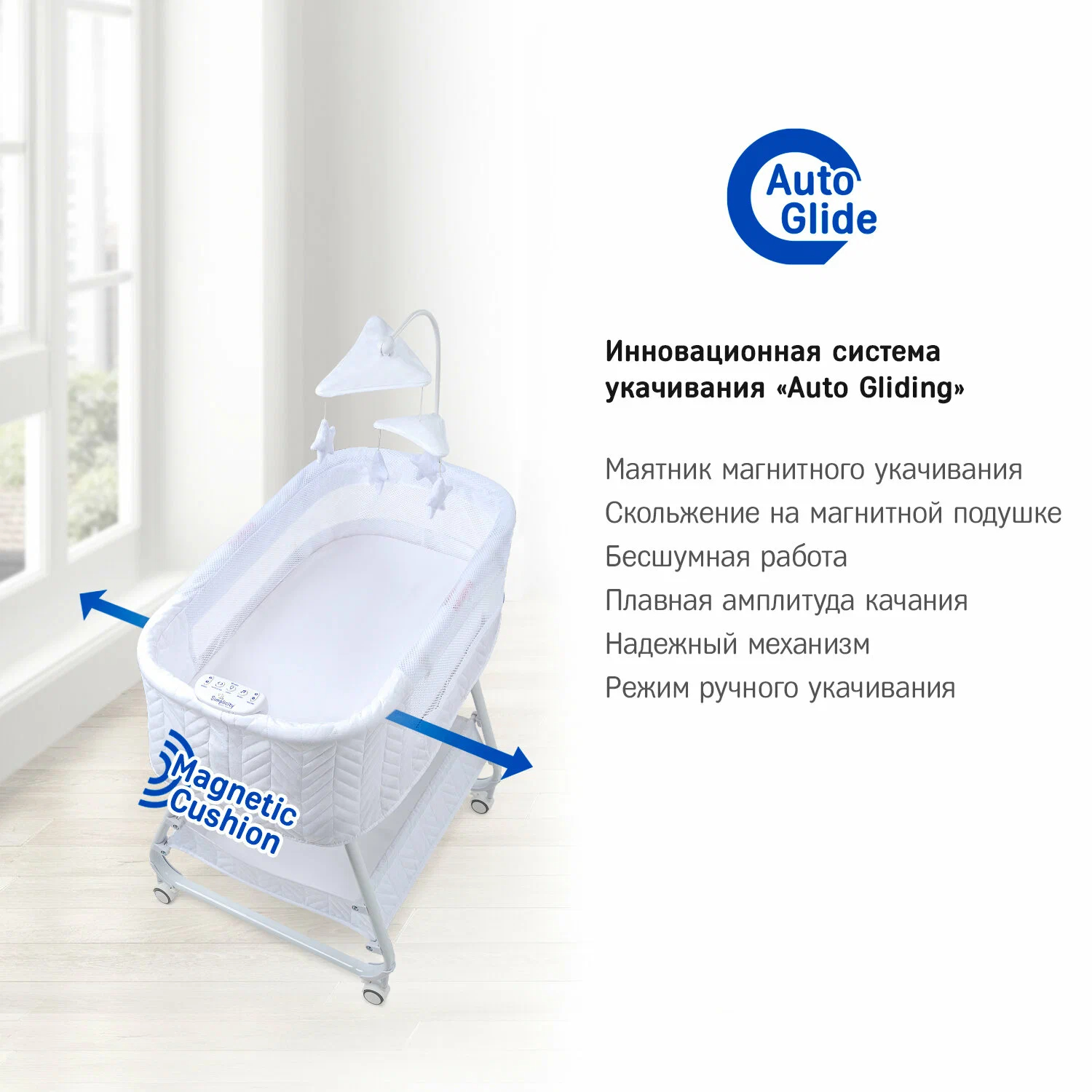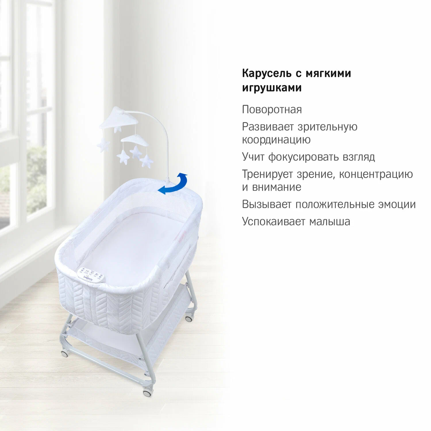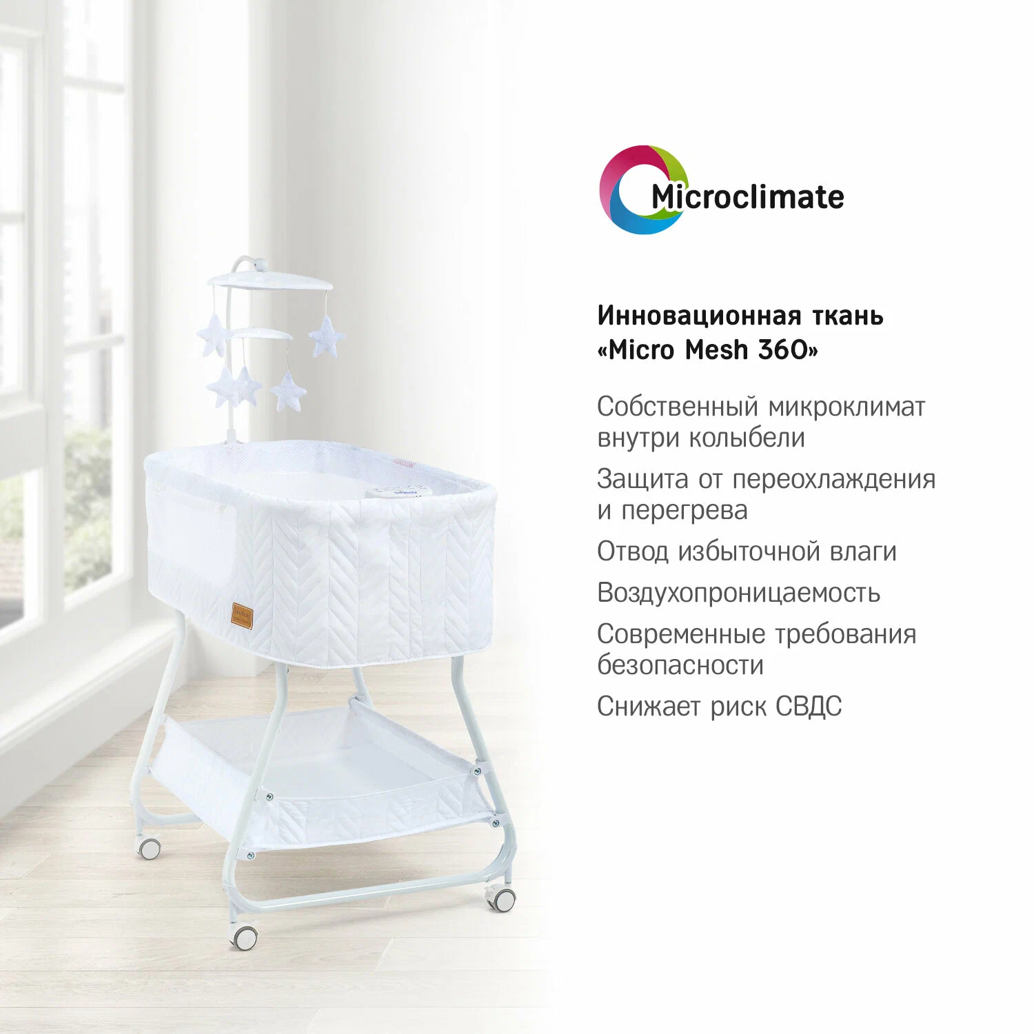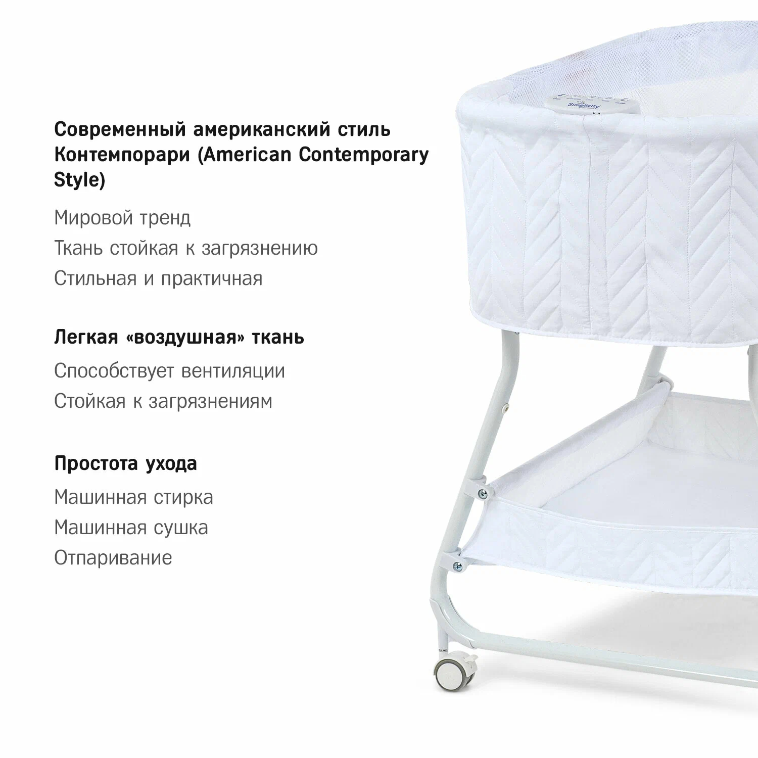 Основные характеристики:Колыбель для новорожденных Simplicity GL4090 Elite – это новое инновационное поколение электронных колыбелей серии Wi-Fi с ручным, сенсорным и голосовым управлением посредством Яндекс «Алиса», которые благодаря возможности интеграции в Яндекс «Умный Дом» значительно упрощают уход за ребёнком.В основу дизайна взят полюбившийся покупателям стиль контемпорари. Тканевый чехол сделан из современного мембранного материала Micro-Mesh 360, создающего внутри комфортный микроклимат. Благодаря добавлению сетчатых вставок родителям удобно наблюдать за младенцем и внутрь люльки всегда будет доступ свежего воздуха. Этот современный мембранный материал можно стирать и сушить в машинке, он прекрасно переносит отпаривание и разглаживается утюгом.Люлька для новорожденных имеет уникальную особенность – она оснащена музыкальной шкатулкой Wi-Fi для ручного управления колыбелью, сенсорного управления посредством маминого смартфона и приложения Tuya «Smart Life», а также голосового управления с помощью голосовых команд для колонки Яндекс «Алиса» и приложения «Умный Дом».