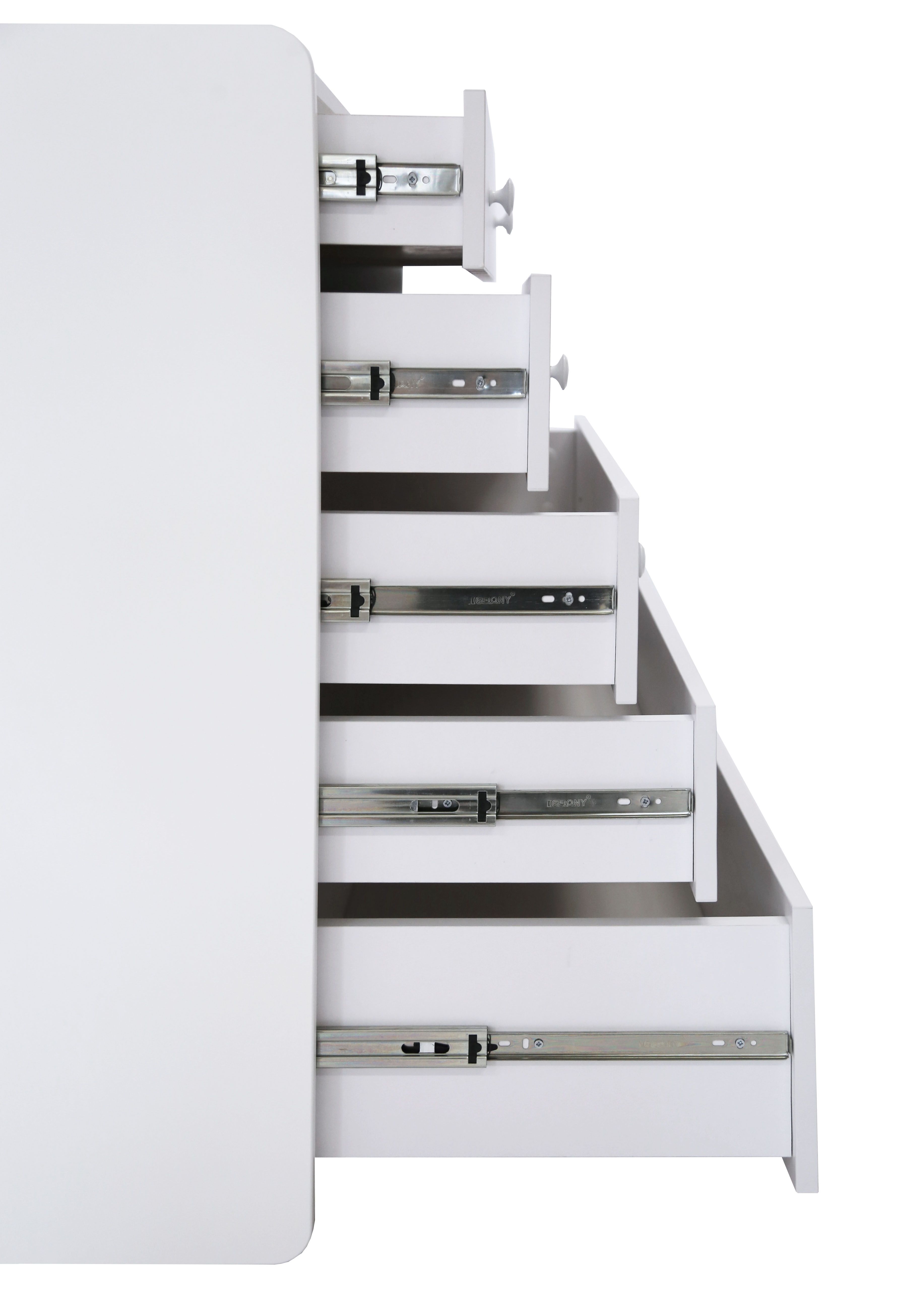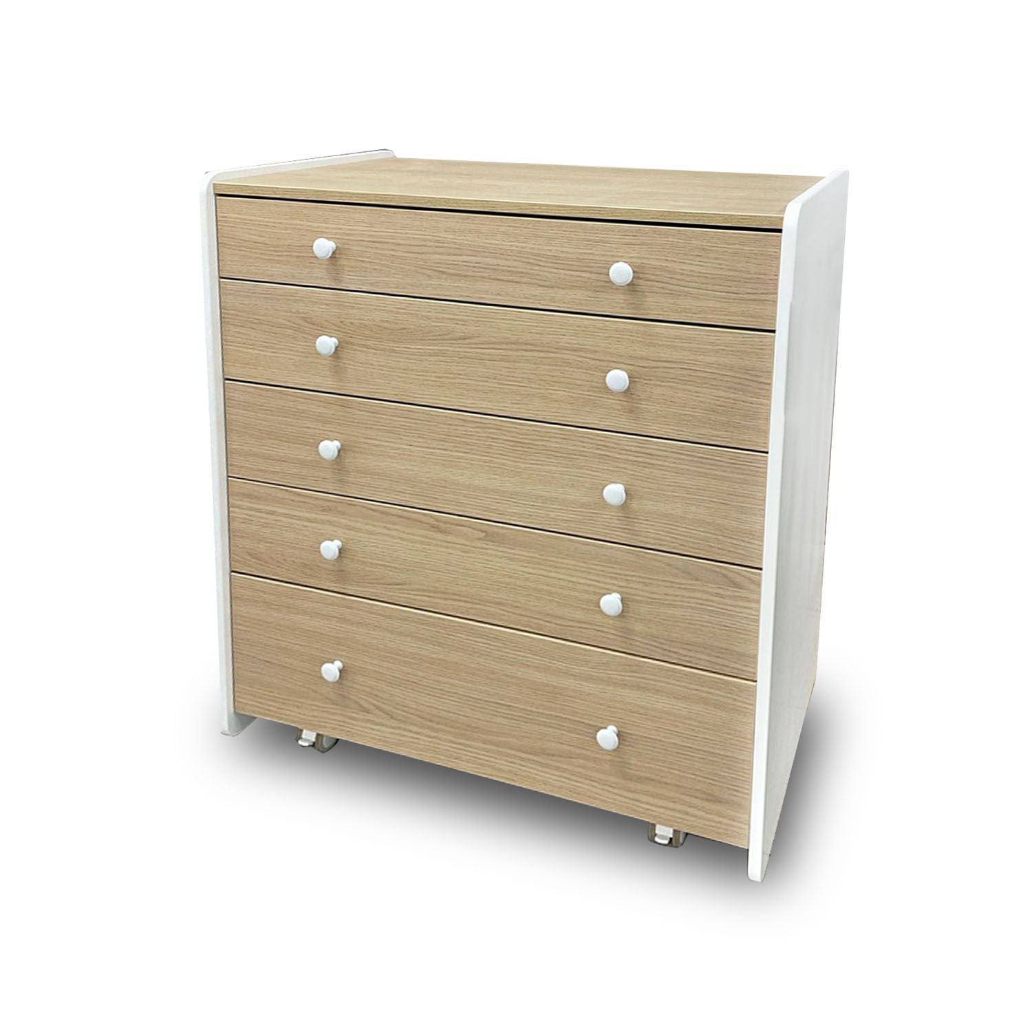 Приятные особенности: Комод ANTEMIMari-это комод, созданный в современном стиле с учетом эргономики и трендов в индустрии детских товаров. Комод можно установить на колеса, что позволит беспрепятственно убираться за ним даже женщине. Пять вместительных ящиков на направляющих полного выдвижения с тихим ходом помогут сэкономить место и уложить все вещи по местам. В комплекте к верхнему ящику идет органайзер с секциями, для разграничения пространства. Боковые стенки изготовлены из экологически чистого материала, покрытые износостойкой безопасной краской.