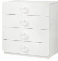 Приятные особенности:Комод Baby Cotton SL выполнен в белом цвете. Несмотря на белое меламиновое покрытие лак стойкий ко всем видам повреждений: царапинам, ударам, трению. Комод вписывается в детские комнаты со светлым стилем. Всего четыре выдвижных ящика с широкими круглыми ручками для большего удобства их открытия. Ящики выдвигаются практически на всю ширину, позволяя свободно брать уложенные в них вещи. От выпадения ящика защищает ограничитель, установленный снизу. Плавность хода обеспечивает механизм с колесиками, который настроен на медленное выдвижение: защищает от случайного удара по пальцам рук. Благодаря многочисленным тестам и наличию сертификата качества комод серии Baby Cotton SL считается безопасной мебелью для детской комнаты.