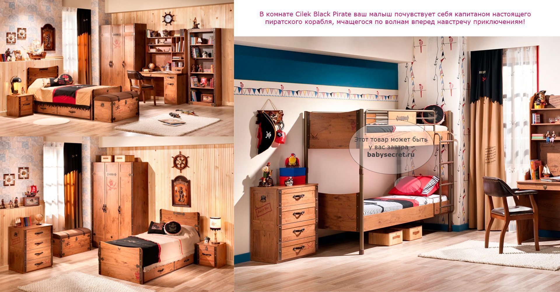 Лопни моя селезенка, если это не комната настоящего пирата! Отличие настоящей комнаты для маленького сорванца состоит в обязательном наличии не просто удобной и качественной мебели, но и полноценного игрового пространства, развивающего воображение ребенка и позволяющего проявить необходимую активность.