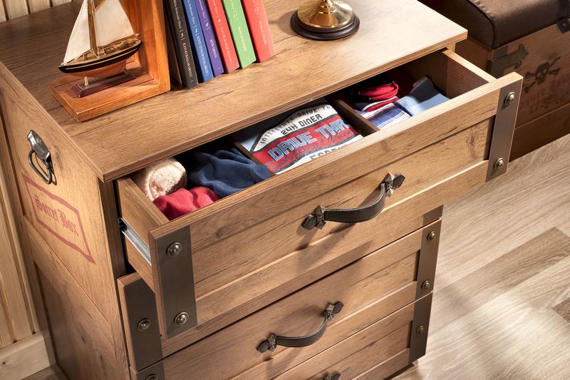 Приятные особенности комода Cilek Black Pirate:очень легко спрятать вещи в комнате, полной тайн, и комод с 4-мя ящиками поможет вам в этом.