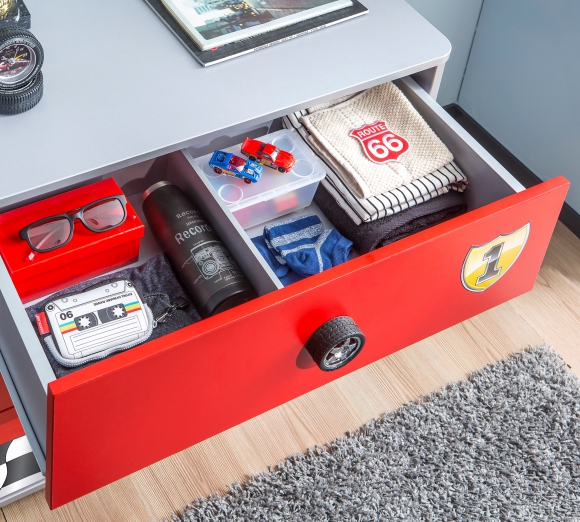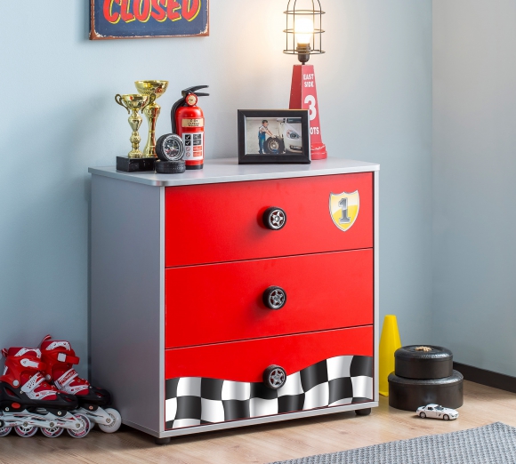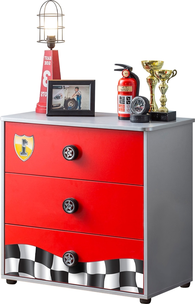 Приятные особенности:Яркая и стильная тумбочка Cilek Racecup в красно-серой цветовой гамме, добавит веселые нотки в интерьер детской комнаты. Благодаря современному дизайну и своей функциональности, тумба органично впишется и подойдет как для хранения вещей самого маленького ребенка, так и для подростка. Тумба по своей конструкции напоминает мини-комод. Три вместительных выдвижных ящика позволят организовать хранение вещей разных категорий отдельно друг от друга. Удобная столешница может служить как полкой для предметов декора, так для ночника или других нужных предметов. Выполнена тумбочка из ДСП высокого класса, поэтому совершенно безопасна с точки зрения СанПина. Для прочности и устойчивости к механическим воздействиям, основной материал отделан ламинированным покрытием. Поэтому она легко отмывается от загрязнений, поддается влажной уборке и не боится таких агрессивных веществ, как пластилин, клей. Устойчивая, надежная конструкция высокого качества практична и долговечна. Детская мебель марки Cilek известна по всему миру. По мнению экспертов, это оптимальный выбор, для обустройства детских комнат.