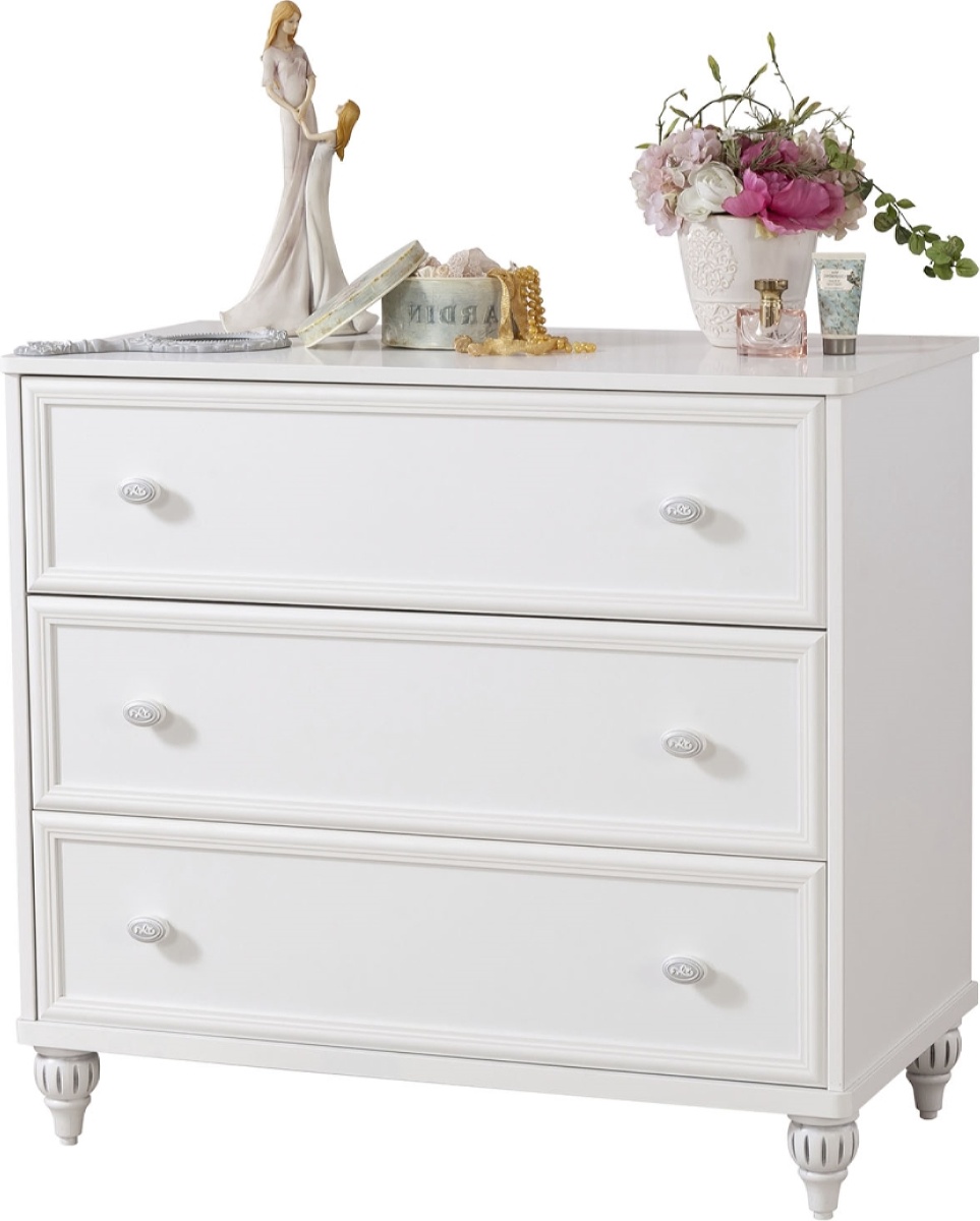 Приятные особенности:Комод Romantic 20.21.1203.00 турецкого производителя Cilek - это идеальный выбор для заботливых родителей. Такая мебель идеально вписывается в интерьер современных детских комнат. Она не только выглядит роскошно, но и славится превосходным качеством.Почему же стоит сделать выбор в пользу данной модели? Во-первых, она изготавливается из ЛДСП. Данный материал славится отличными эксплуатационными показателями. Он прочный, надежный, экологически безопасный. Во-вторых, этот комод компактный, благодаря чему его можно разместить даже в маленьком или загроможденном помещении. В-третьих, он вместительный. Изделие оснащается тремя выдвижными ящиками и надежной фурнитурой, которая делает процесс открывания/закрывания удобным даже для детей. В-четвертых, перед проведением уборки в комнате комод не придется отодвигать. Он оснащается высокими, но устойчивыми фигурными ножками.Эта мебель предназначается для хранения одежды, постельного белья, косметических средств и т.д. Преимущественно ее выбирают поклонники классики. Но для новомодных стилевых направлений она также подходит. Приятный светлый оттенок и изысканный дизайн оценят по достоинству как дети, так и их родители.