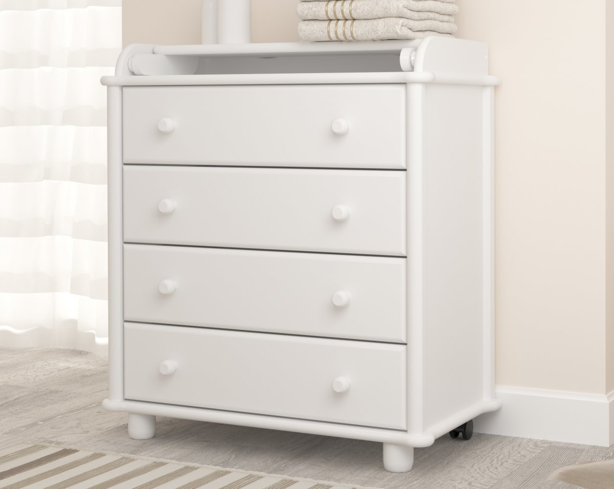 оснащен откидным пеленальным столиком в верхней части комода, который сократит время и облегчит процесс пеленания Вашего малыша