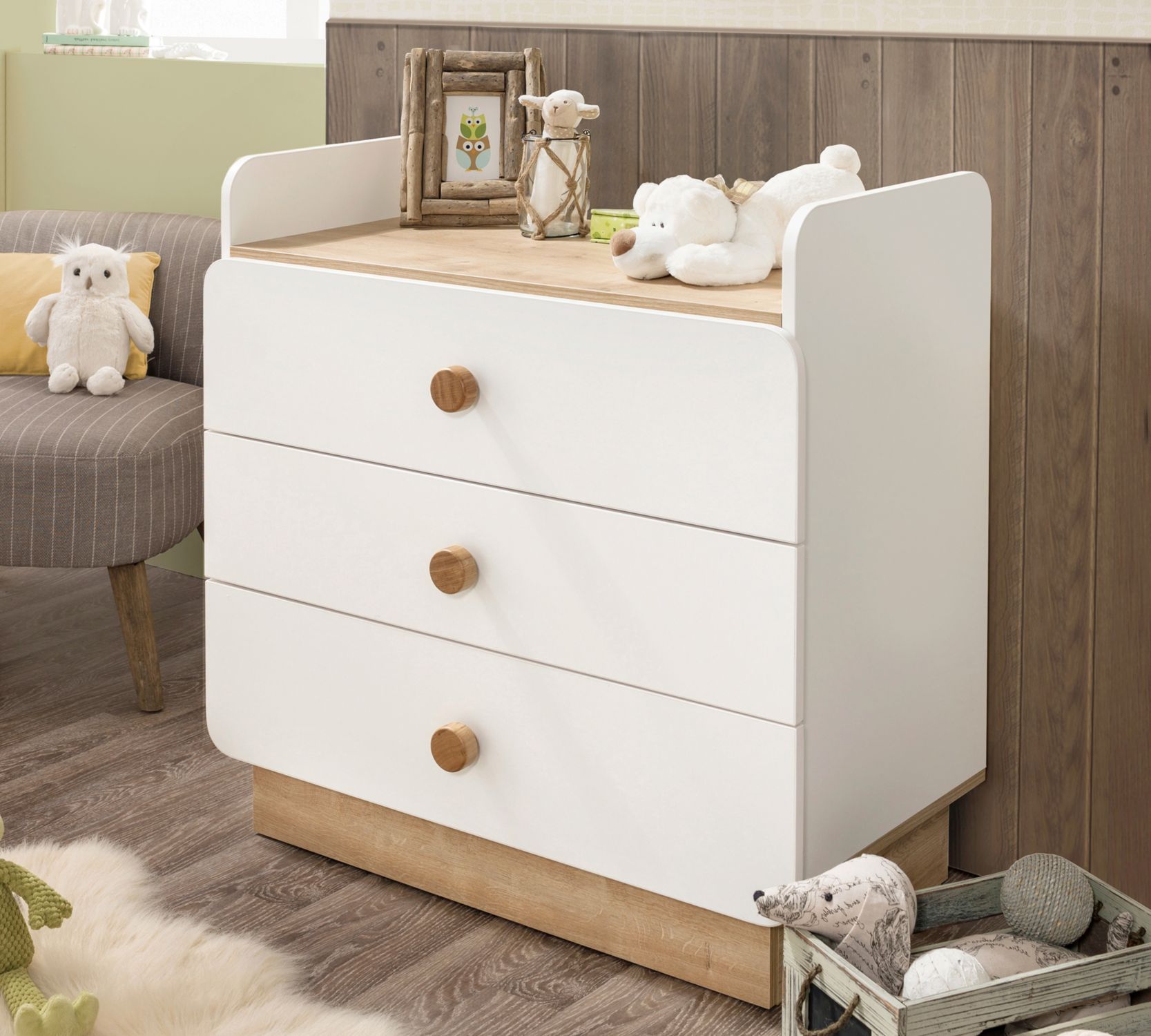 Приятные особенности:Пеленальный комод Cilek Natura Baby от турецкого производителя поможет заметно облегчить процедуры по уходу за малышом. Он дарит ребенку безопасный и комфортный отдых, помогает выполнять пеленание без задействования лишних элементов. При этом, вся мебель данного бренда изготовлена на основе экологически чистых материалов. Сама расцветка столика выполнена в теплых тонах со вставками из натурального дерева. Новая серия помогает адаптировать готовую мебель под стиль любого помещения. Пеленальный столик гарантирует необходимый уровень безопасности для малыша. Компактные размеры упростят процесс установки мебели в детской или родительской комнате. Функциональная модель трансформируется в зависимости от потребностей самого пользователя. В столик встроен дополнительный модуль, который запросто превращает верхнюю часть обратно в комод. Также, появляются дополнительные полки для хранения белья и детских вещей. Таким образом, можно заменить сразу два элемента в детской комнате. На все оригинальные изделия распространяется официальная гарантия.