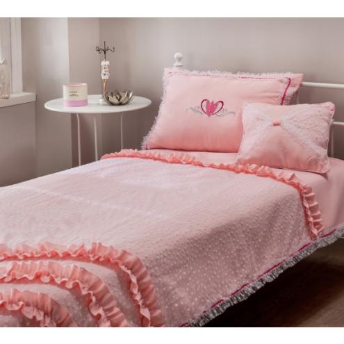 Приятные особенности:Детский набор из двух подушек и покрывала прекрасно впишется в интерьер дома и станет ярким украшением детской комнаты. Выполненный из материала высокого качества, набор соответствует необходимым санитарно-гигиеническим требованиям, предъявляемым к данному виду товара. Форма подушек способствует здоровому формированию осанки ребенка. Многофункциональность покрывала обеспечена тем, что его можно использовать и для укрывания во время короткого дневного сна, и для защиты постельного белья от загрязнений. Детское покрывало Yakutсостоит из двух декоративных подушек и покрывала.Прекрасное, яркое покрывало обязательно понравится маленькой моднице. Покрывало обеспечит такой комфортный сон, о котором вы могли только мечтать.