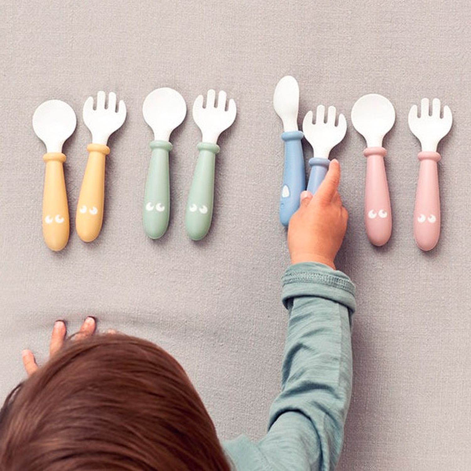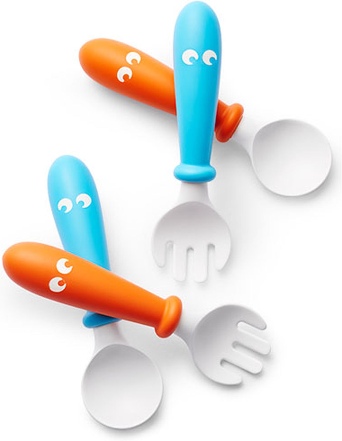 Приятные особенности набора BabyBjorn:Детские ложки и вилки BabyBjorn можно использовать обеими руками, поэтому вилка и ложка будут одинаково удобны как для правши, так и для левши. Кольцо в нижней части ручки не дает детской руке соскальзывать вниз по ложке или вилке в еду.Благодаря углублению на обратной стороне ручки, ложка и вилка опираются на край тарелки в промежутках между использованием, а не соскальзывают в тарелку. Край ложки/вилки немного приподнят, поэтому малышу удобно доносить еду до рта.Все изделия для кухни и ванной из ассортимента BabyBjorn соответствуют европейским и американским стандартам безопасности. Это означает, что пластик, из которого они изготовлены, тщательно проверяется на содержание бисфенола A и других опасных веществ.