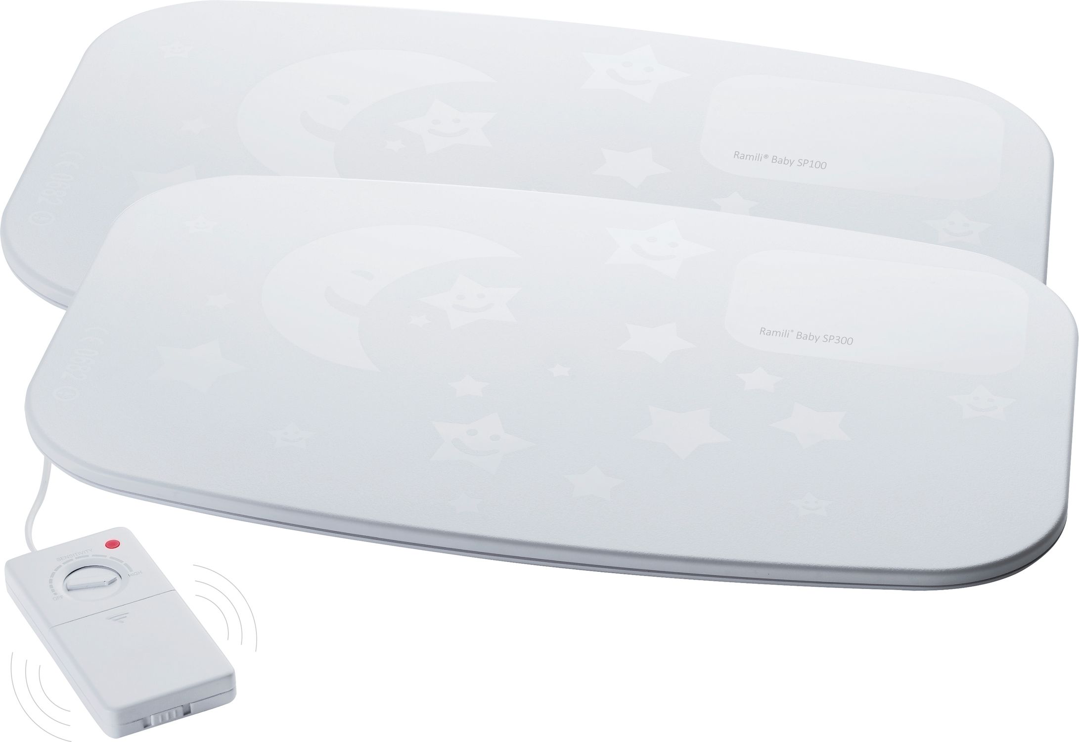 Приятные особенности :В комплект включены два монитора дыхания (SP300 и SP100), которые при необходимости могут быть отключены друг от друга. Ramili SP300 – основной блок, а Ramili SP100 является дополнительным блоком, который вдвое увеличивает площадь покрытия датчиков системы. Оба монитора работают от обычных батареек. Продолжительность работы от трех батареек составляет приблизительно 90 дней и зависит от качества используемых элементов питания.Монитор дыхания Ramili® Movement Sensor Pad SP300100 представляет из себя два коврика, которые располагаются под матрасиком в детской кроватке. Коврики оснащены высокочувствительными сенсорами, которые контролируют движение, вызываемое дыханием ребенка во время сна. Если причин для тревоги нет (естественный ритм дыхания), то на мониторе радионяни Ramili отображается соответствующая анимация. Если обнаружен необычный ритм дыхания или его отсутствие, то радионяня подает родителям визуальный и звуковой сигнал тревоги. Монитор дыхания Ramili Movement Sensor Pad SP300100 не предназначен для автономной работы, а является дополнительной опцией для радионяни Ramili Baby, поддерживающей подключение монитора дыхания из серии SP.