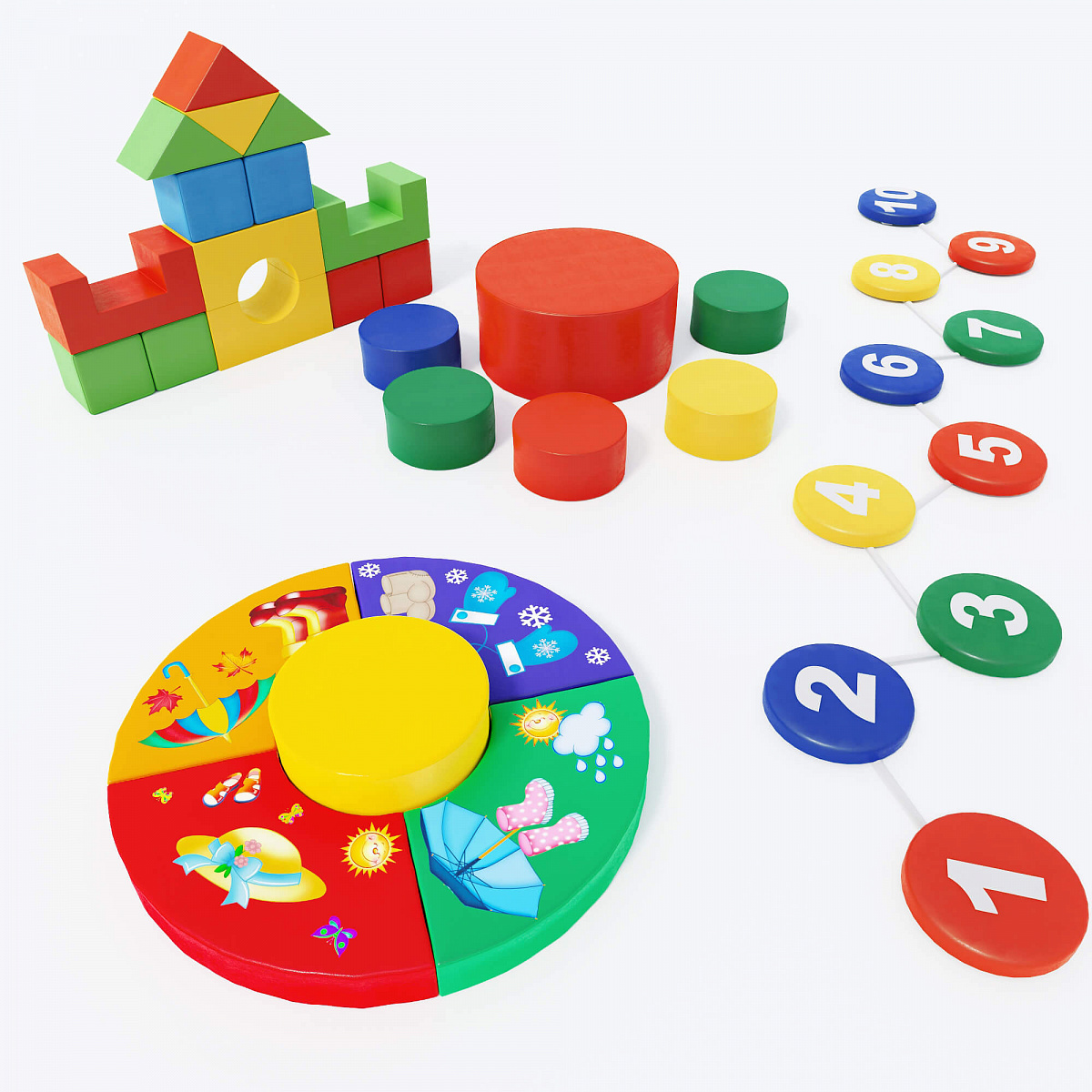 Приятные особенности:Набор мягких игровых комплексов предназначен для организации детского досуга в игровых комнатах, залах лечебной физкультуры и детских садах. Мягкие модули, входящие в состав набора подойдут для комплексного физического и умственного развития детей разных возрастов. Элементы комплекса можно использовать в качестве строительных блоков для сооружения различных конструкций, а также в качестве элементов полос препятствий при организации соревновательных мероприятий. Дидактический модуль «Времена года», входящий в состав набора, формирует у детей представление об окружающем мире, способствует развитию внимательности, памяти, логического и образного мышления. Модуль «Шагайка» обучает основам счета и развивает координацию в пространстве.