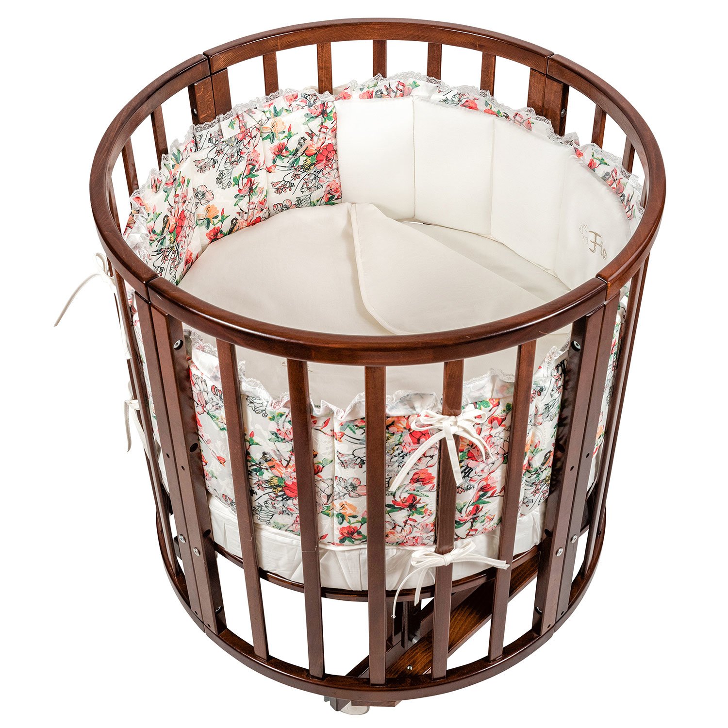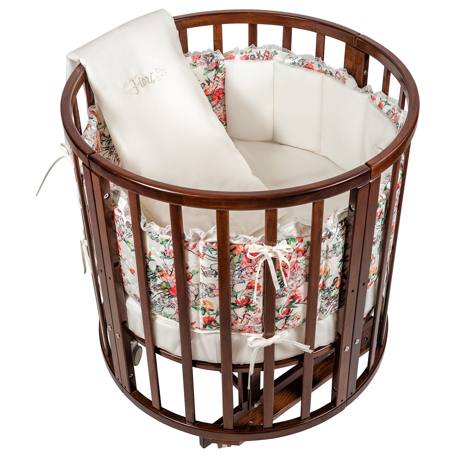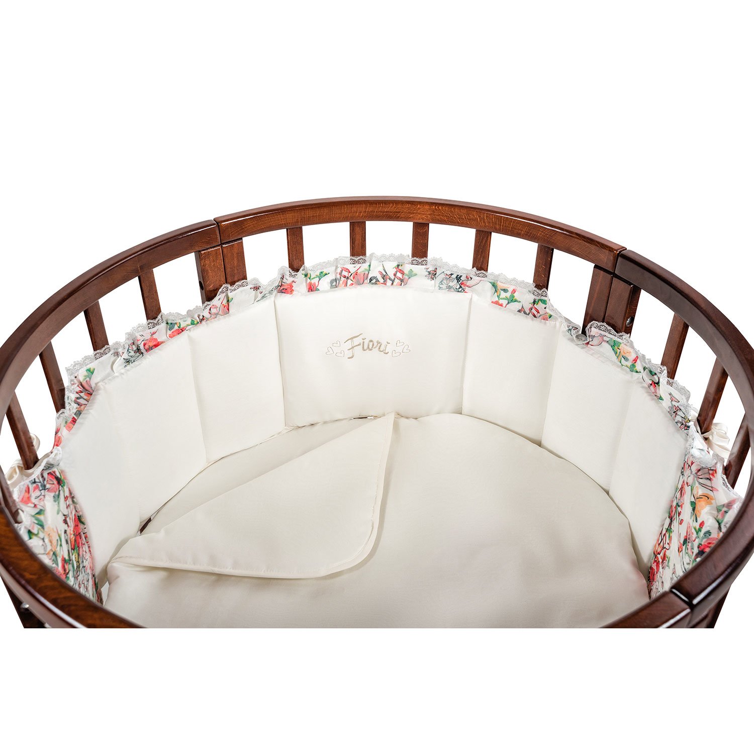 Приятные особенности :Комплект Nuovita Fiori 3 предмета с цветочным принтом приятно удивляет не только оригинальным рисунком, но и необычной комбинацией материалов. Если постельные принадлежности, входящие в этот набор, изготовлены из традиционного светлого сатина, то яркие борта выполнены из роскошного жаккарда. Этой ткани свойственно сочетание гладкой и бархатистой текстур. Оно не только радует взгляд, но и способствует развитию малыша, который, трогая бортики ручками, будет получать разные тактильные ощущения. Украшенные тонким кружевом рюши и шелковая вышивка дополняют великолепное оформление этого комплекта. В комплекте простыня на резинке, квадратный плед и борт из двух частей.