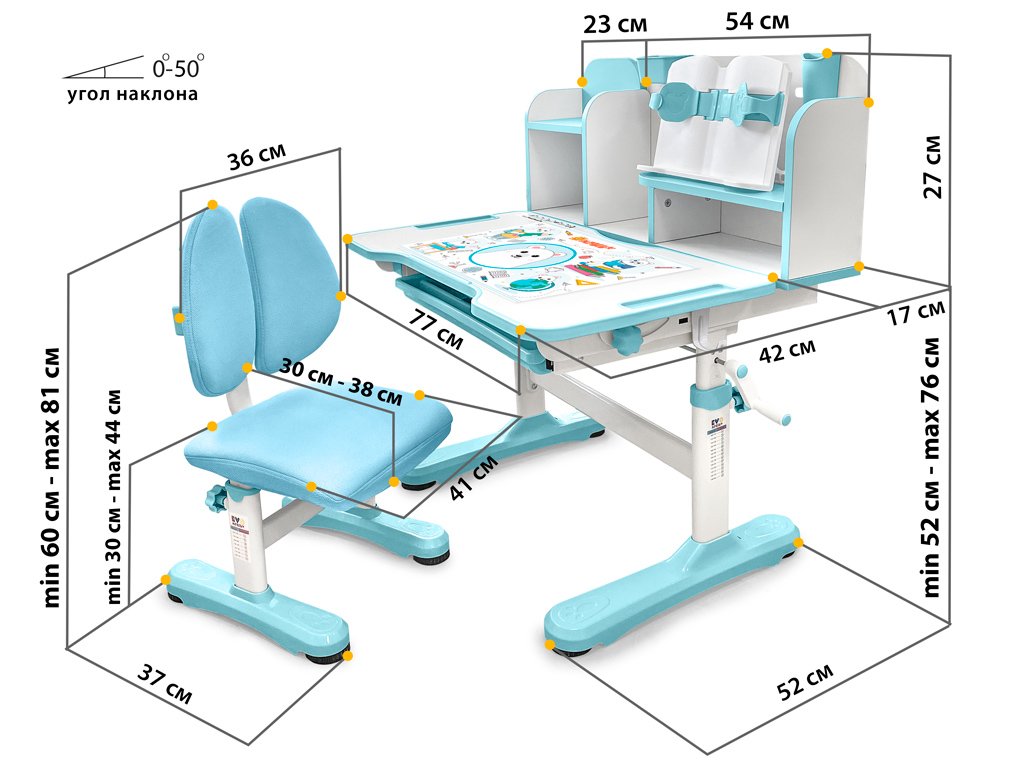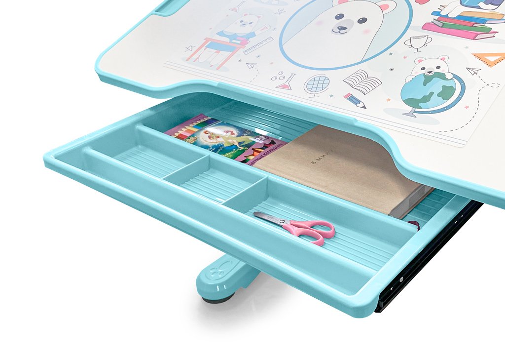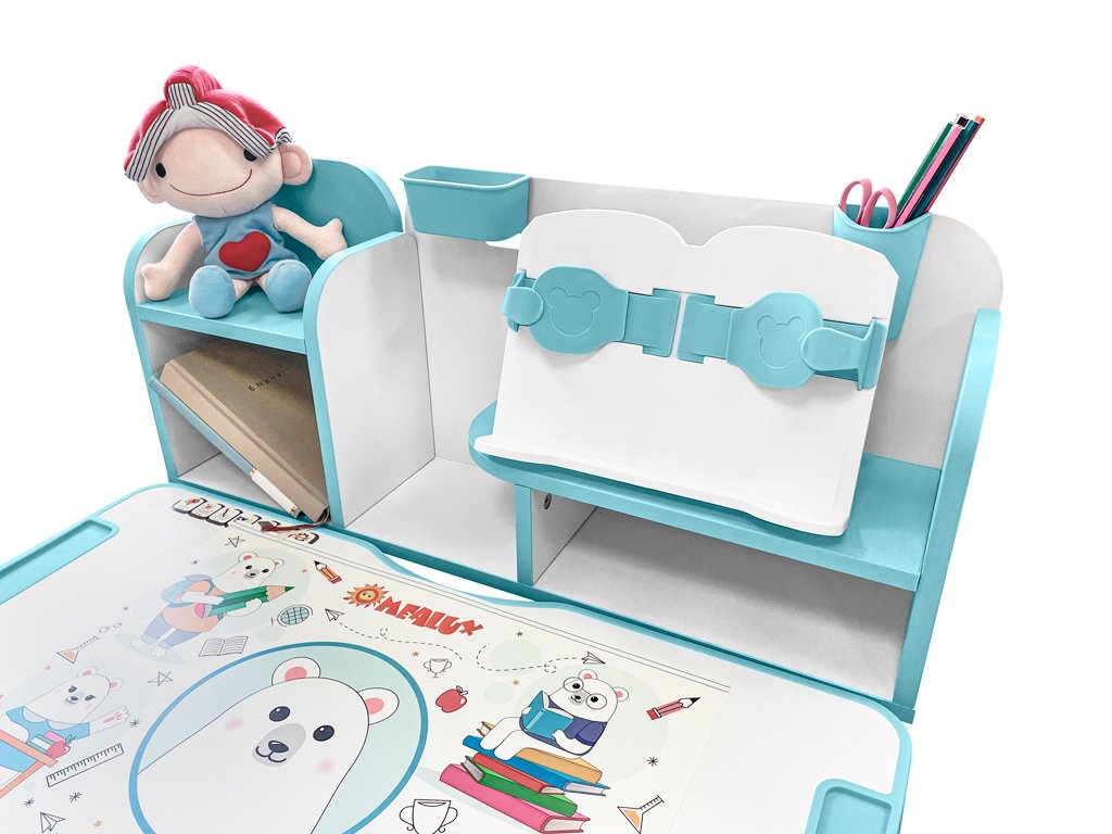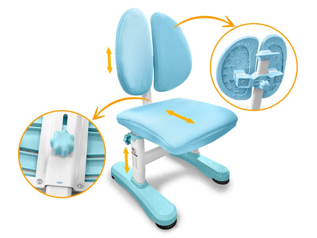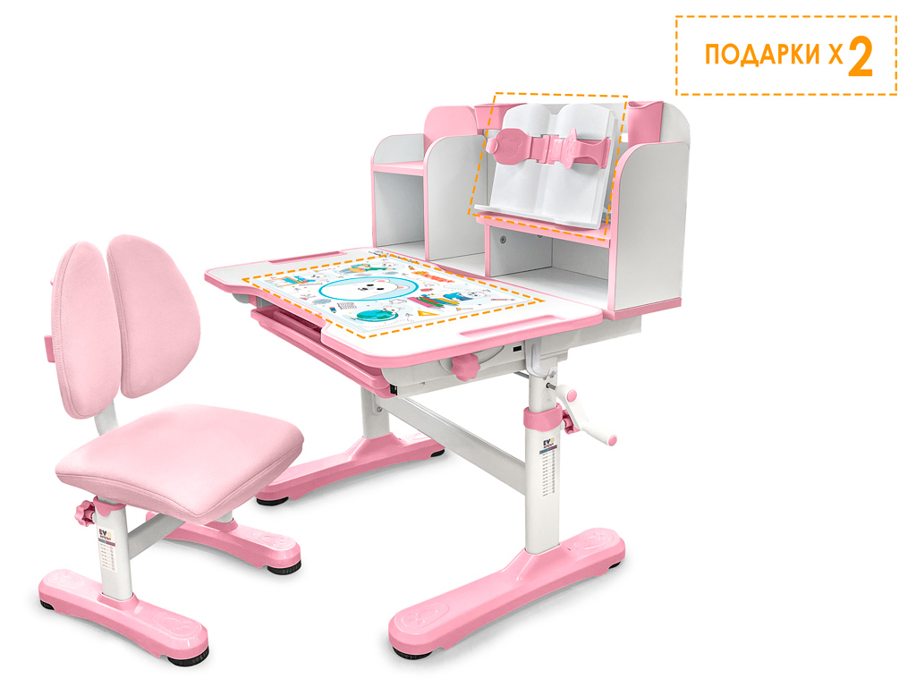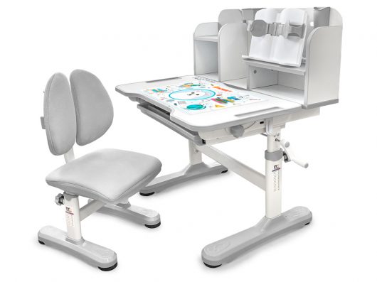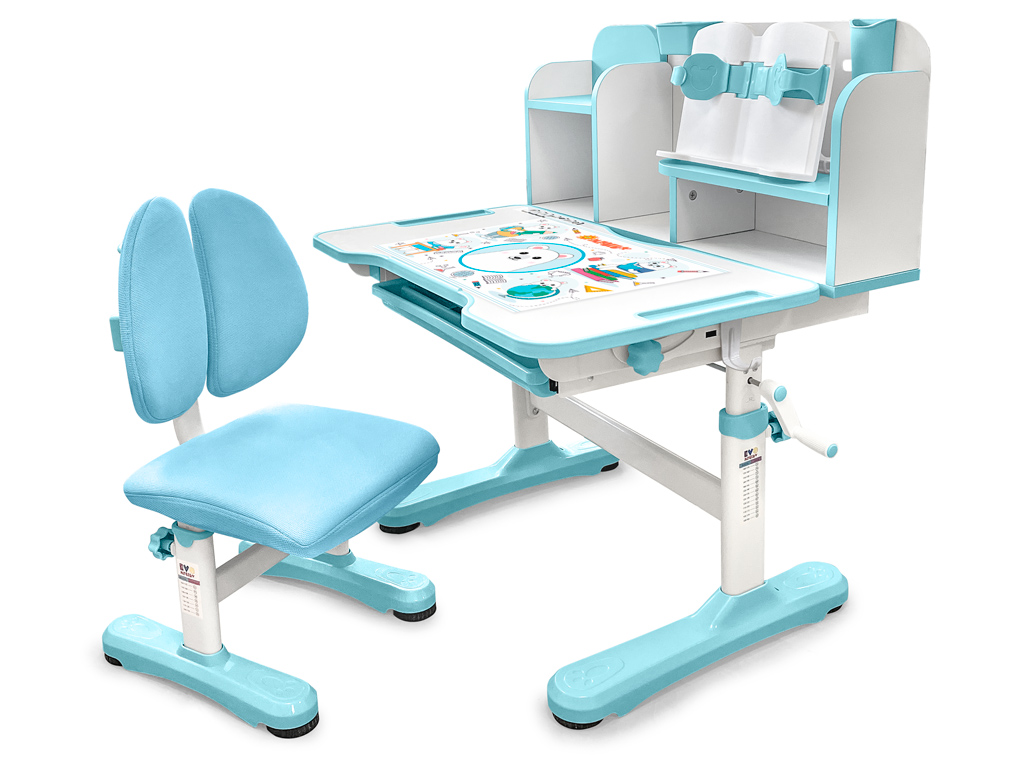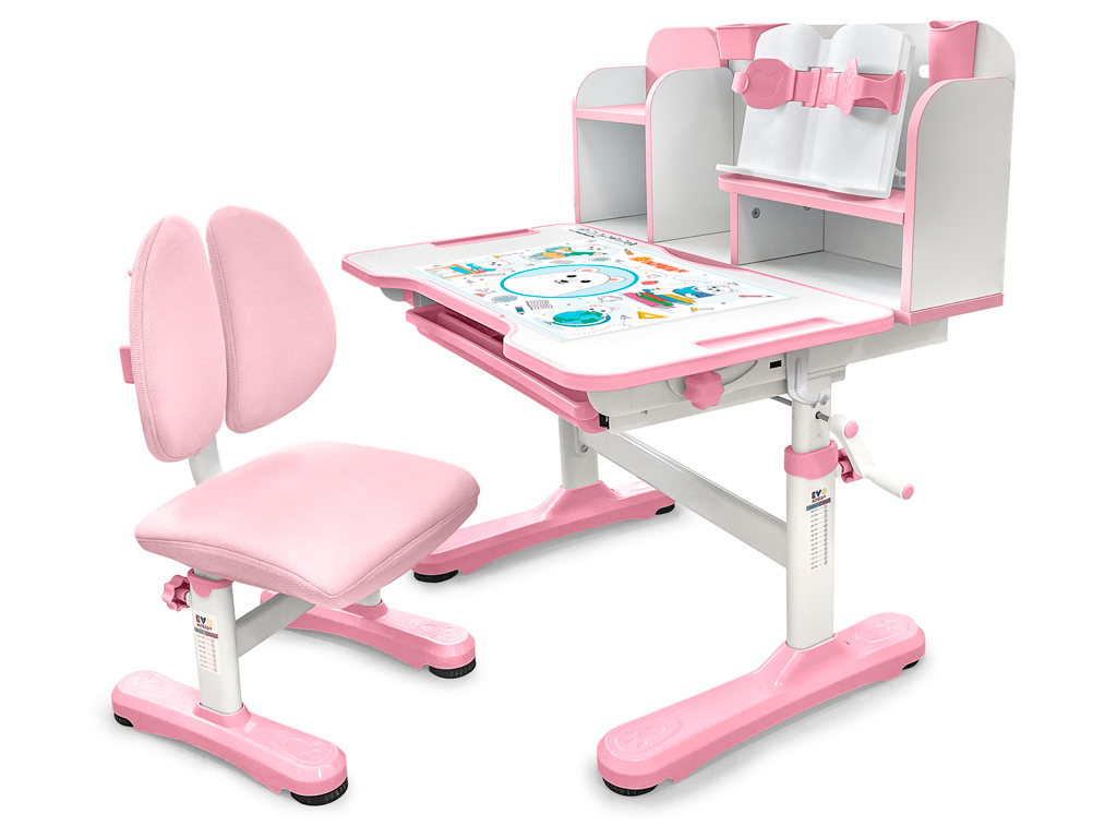 Приятные особенности:Комплект парта и стульчик Mealux EVO Panda имеет растущее кресло с двойной ортопедической спинкой и мягким съемным сиденьем, обтянутым мебельной дышащей тканью, что является главной особенностью. Кресло регулируется по высоте и глубине специальными винтами. На каркасе крепится ручка для удобного перемещения кресла по комнате.Полка-надстройка дополнена подстаканником и пеналом.Высота столика меняется механизмом плавной регулировки специальной ручкой. Шкала соотношения роста ребенка к высоте столика поможет правильно подобрать параметры. Данный комплект подходит для детей от 3-х лет. На ножках есть специальные мебельные опоры, которые можно отрегулировать в случае неровности пола.Столешница меняет угол наклона до 50 градусов и фиксируется винтами. Столешницу можно использовать не только для письма и чтения, но и как мольберт.Под столешницей размещен вместительный выдвижной органайзер с разделителями.Приятным бонусом станет наличие съемное металлического крючка для размещения портфеля или спортивной формы.