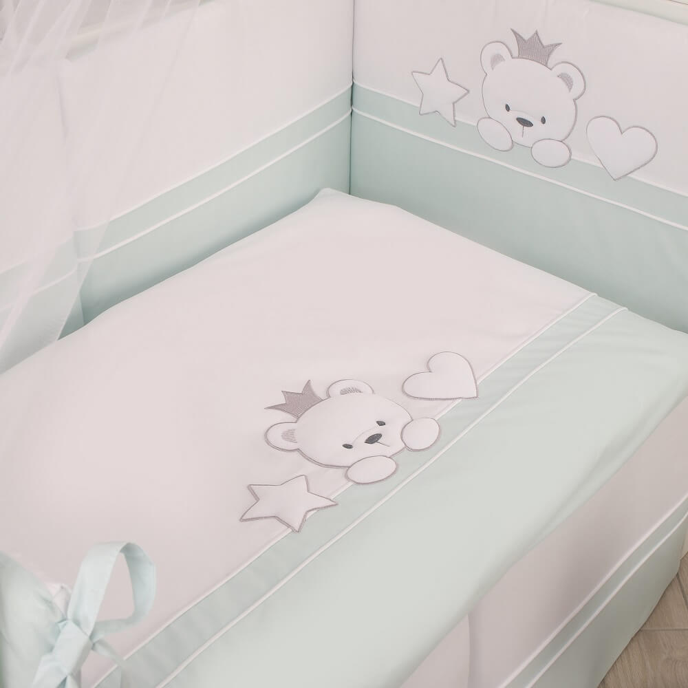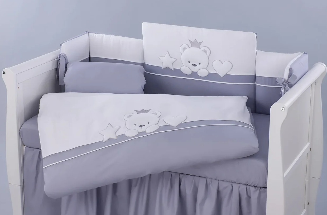 Приятные особенности:Комплект постельного белья Lepre Miky-это классический комплект из 100%-го хлопка. Имеет нежные цвета, симпатичную аппликацию с милыми мишками и высокое качество изделия. В комплекте — 6 предметов, которые нужны, чтобы полностью укомплектовать кроватку. Мягкие бортики берегут малыша от сквозняков и создают нужный уют для сна. Бортик включает две независимых части с возможностью отстегивать фронтальную и контактировать визуально с родителями. Комплект подходит для кроватей с размером спальных мест - 120x60 см и 125x65 см. Чехлы бортиков застегиваются на молнию, съемные. Одеяло очень легкое, воздушное, гипоаллергенное.