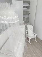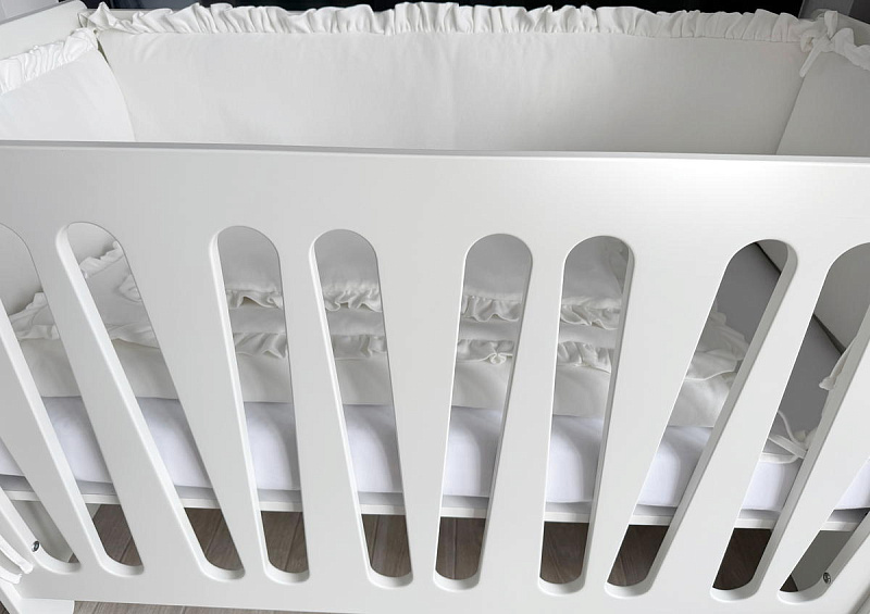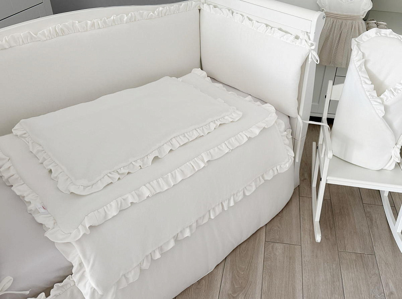 В комплекте: простыня на резинке, подушка, одеяло, бортик (бампер)