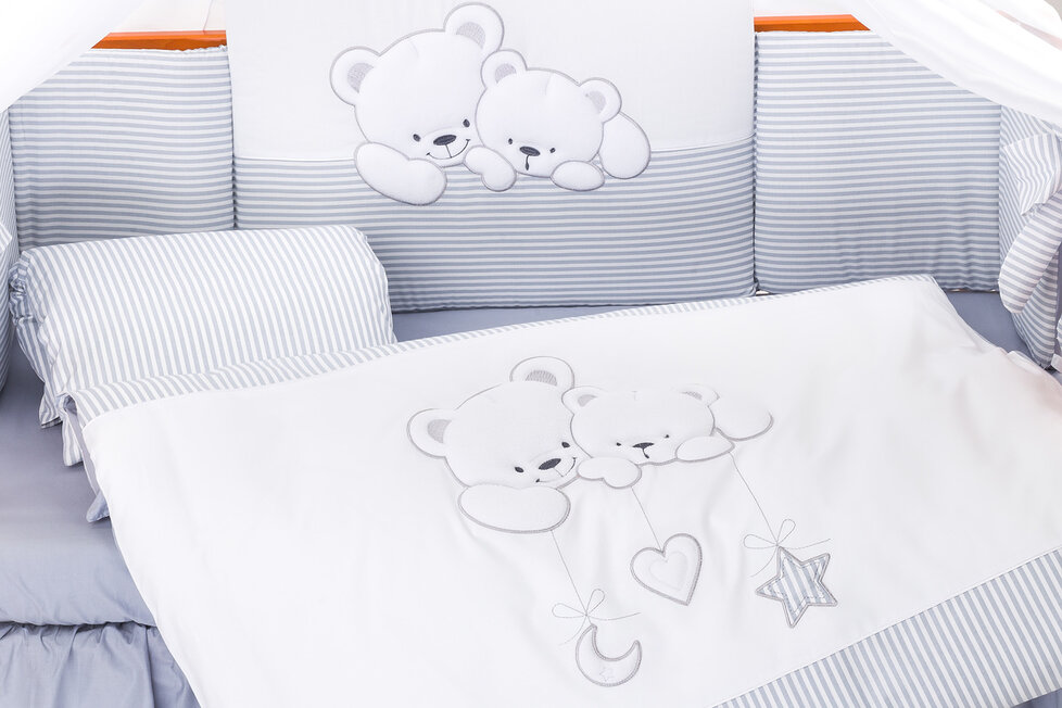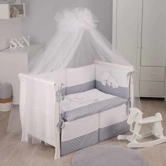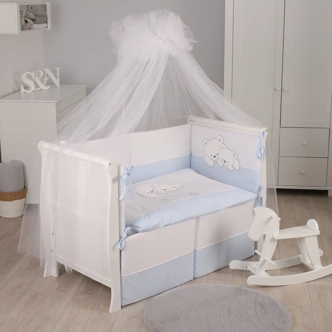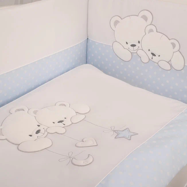 Приятные особенности:Комплект постельного белья Lepre Sweet Bears-это классический комплект из 100%-го хлопка. Имеет нежные цвета, симпатичную аппликацию с милыми мишками и высокое качество изделия. В комплекте — 6 предметов, которые нужны, чтобы полностью укомплектовать кроватку. Мягкие бортики берегут малыша от сквозняков и создают нужный уют для сна. Бортик включает две независимых части с возможностью отстегивать фронтальную и контактировать визуально с родителями. Комплект подходит для кроватей с размером спальных мест - 120x60 см и 125x65 см. Чехлы бортиков застегиваются на молнию, съемные. Одеяло очень легкое, воздушное, гипоаллергенное.