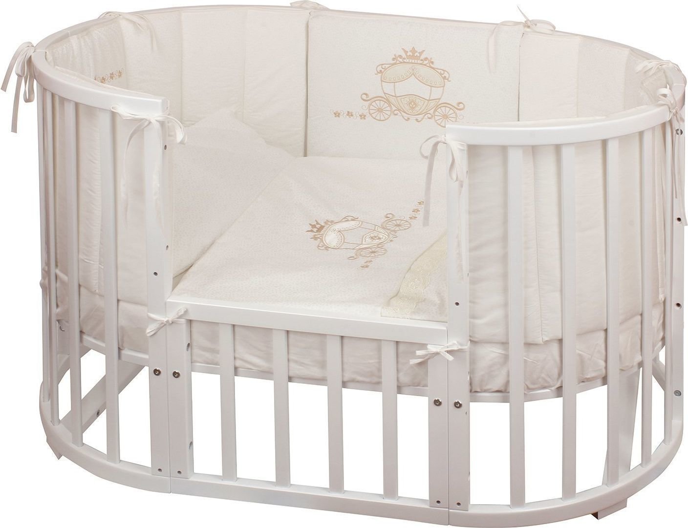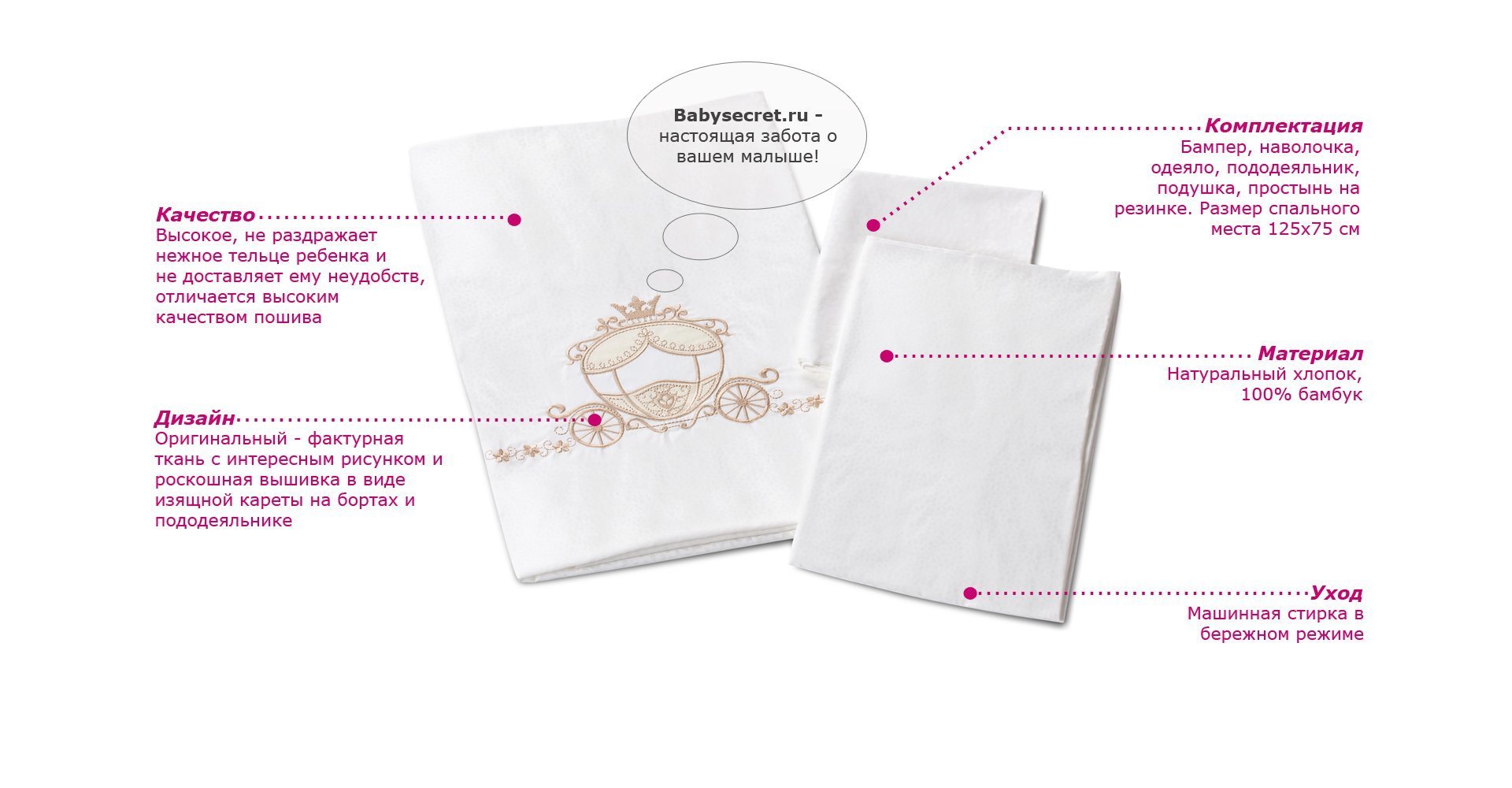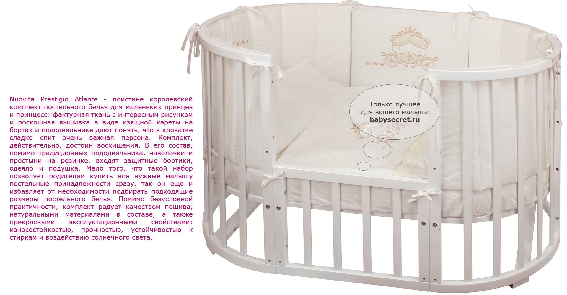 Приятные особенности комплекта постельного белья Nuovita Prestigio Atlante, 6 предметов, 6020/40: поистине королевский комплект постельного белья для маленьких принцев и принцесс: фактурная ткань с интересным рисунком и роскошная вышивка в виде изящной кареты на бортах и пододеяльнике дают понять, что в кроватке сладко спит очень важная персона. Комплект, действительно, достоин восхищения. В его состав, помимо традиционных пододеяльника, наволочки и простыни на резинке, входят защитные бортики, одеяло и подушка. Мало того, что такой набор позволяет родителям купить все нужные малышу постельные принадлежности сразу, так он еще и избавляет от необходимости подбирать подходящие размеры постельного белья. Помимо безусловной практичности, комплект радует качеством пошива, натуральными материалами в составе, а также прекрасными эксплуатационными свойствами: износостойкостью, прочностью, устойчивостью к стиркам и воздействию солнечного света.