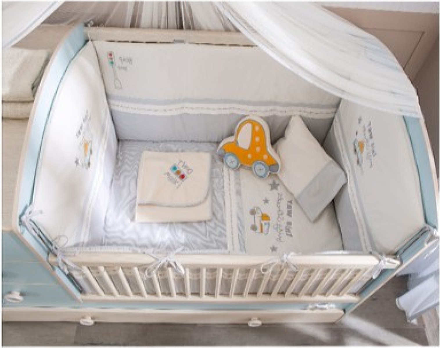 Приятные особенности:Чудесный комплект постельных принадлежностейидеально подходит к мебели для новорожденных Baby Boy. В набор для кроватки малыша входят флисовый плед, защита на боковины и изголовье, наволочка, пододеяльник, детская простынь. Коллекция Baby Boy выполнена в мягкой цветовой гамме, отлично подходящей новорожденным мальчикам. Эта современная детская мебель, удобная как для ребенка, так и для родителей, сделает комнату новорожденного уютной, безопасной и комфортной. Очаровательный декор - изюминка коллекции, делает эту мебель особенно привлекательной.