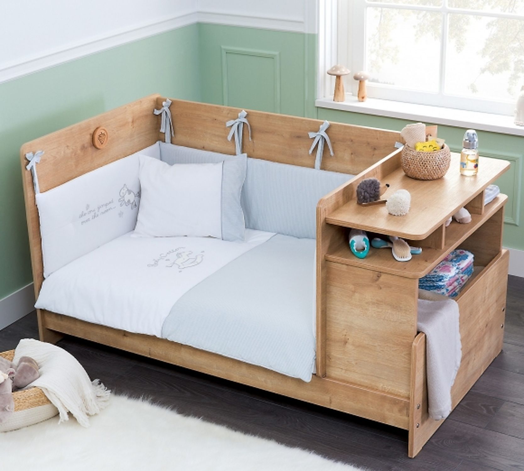 • В комплектацию входит: наволочка, простыня, одеяло, защитный бампер на 3 стороны, декор. подушка, плед.