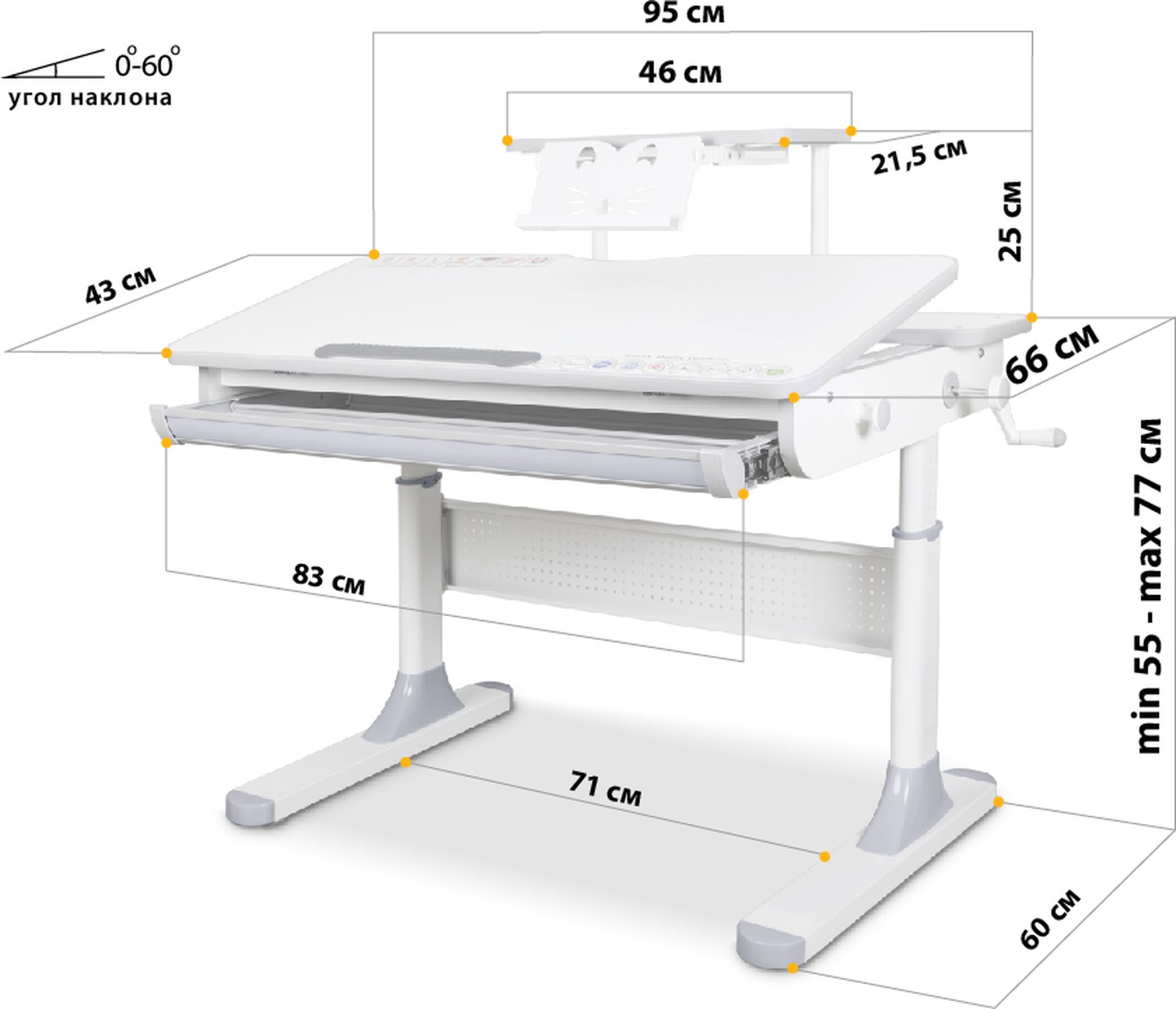 Габариты стола(ШхДхВ):95 х 66 х 54-76 см