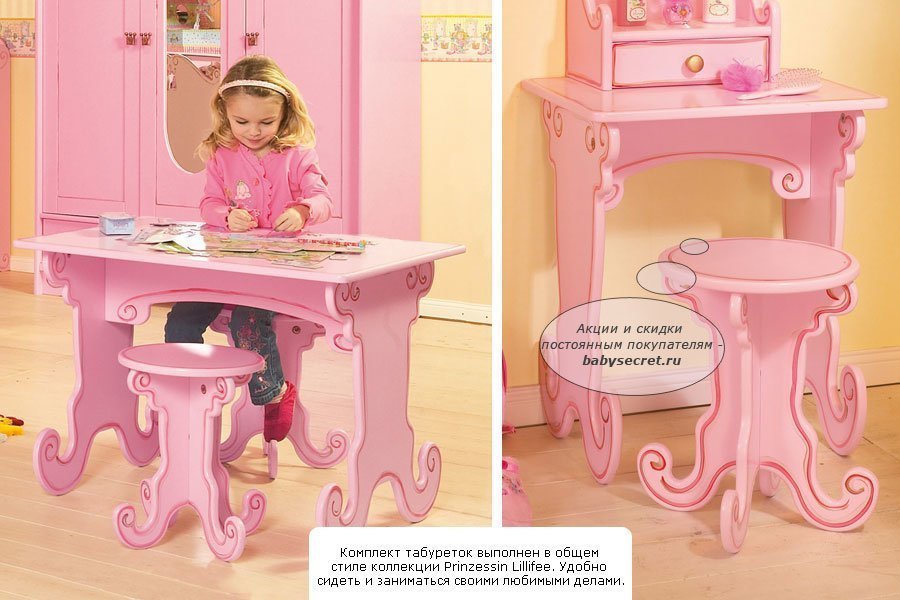 Приятные особенности табуретки Spiegelburg Prinzessin Lillifee: настоящие принцессы достойны только самого лучшего! Например, жить в сказочном королевском замке! Но как сделать его в своей простой квартире? Очень просто. Компания Spiegelburg предлагает товары для настоящих принцесс.Комплект табуреток выполнен в общем стиле коллекции Prinzessin Lillifee. Удобно сидеть и заниматься своими любимыми делами. Игрушки и детская мебель Spiegelburg отвечают всем требованиям европейских стандартов безопасности, радуют и восхищают детей и их родителей не только в Европе, но и во всем мире.