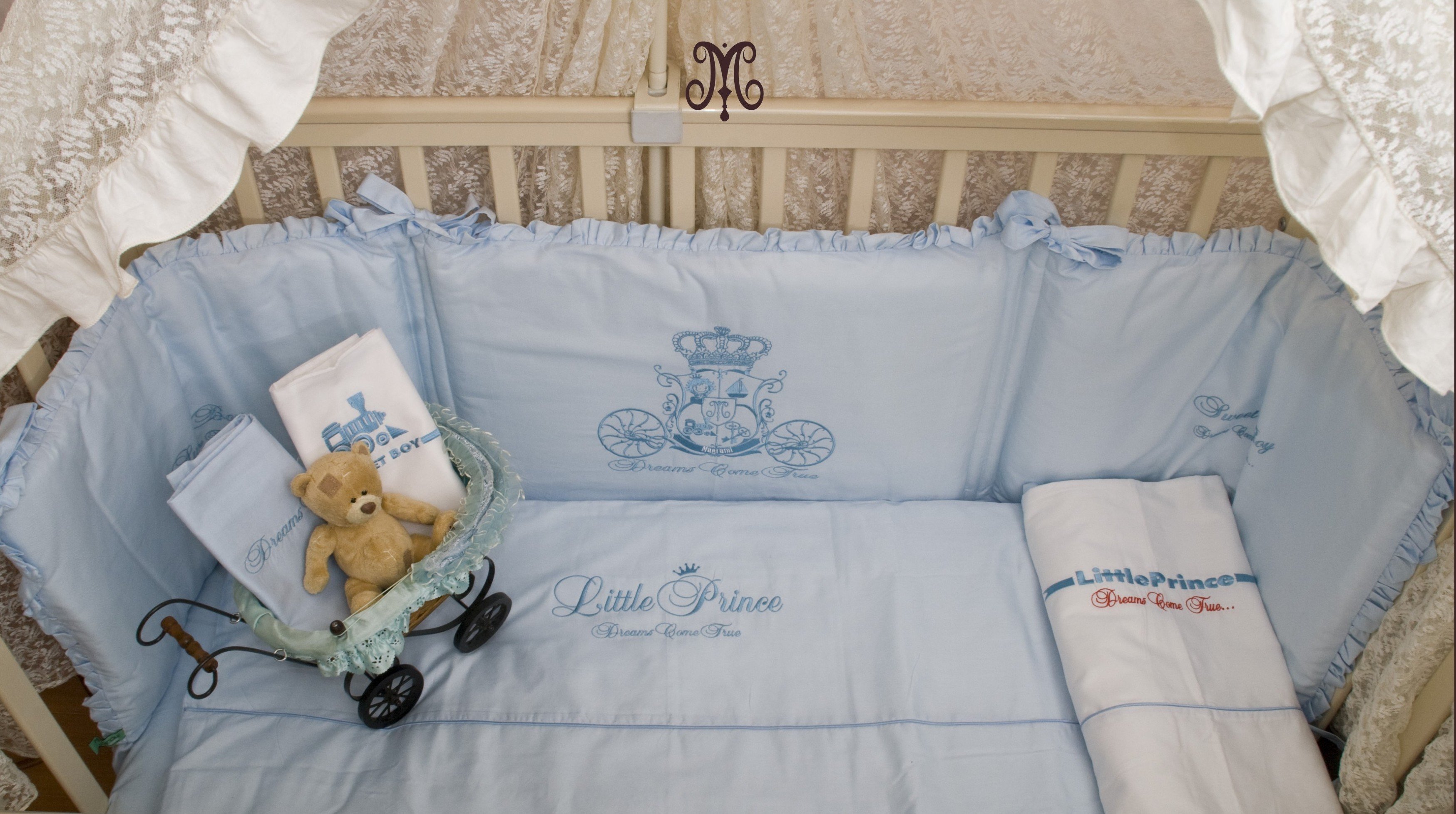 Приятные особенности:Комплект для мальчиков в голубых тонах приятно удивит вас необычным дизайном. Нежные вышивки исполненные высококлассными нитями сделают ложе Вашего маленького принца поистине королевским.