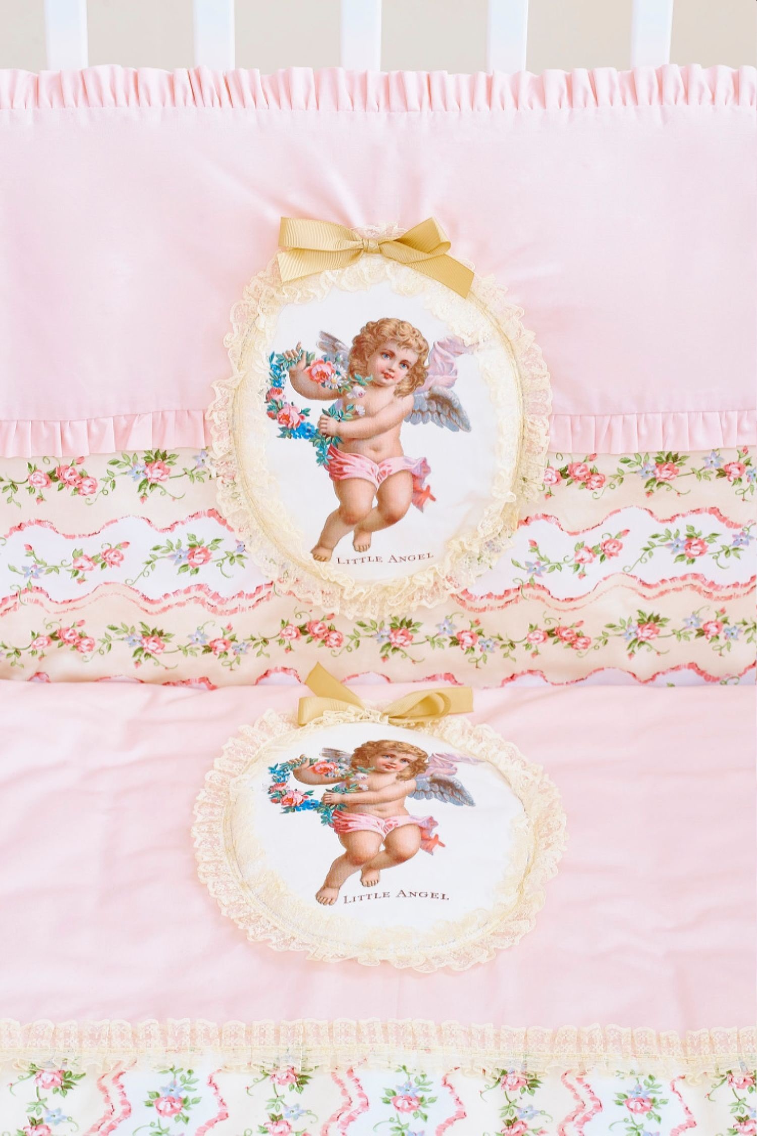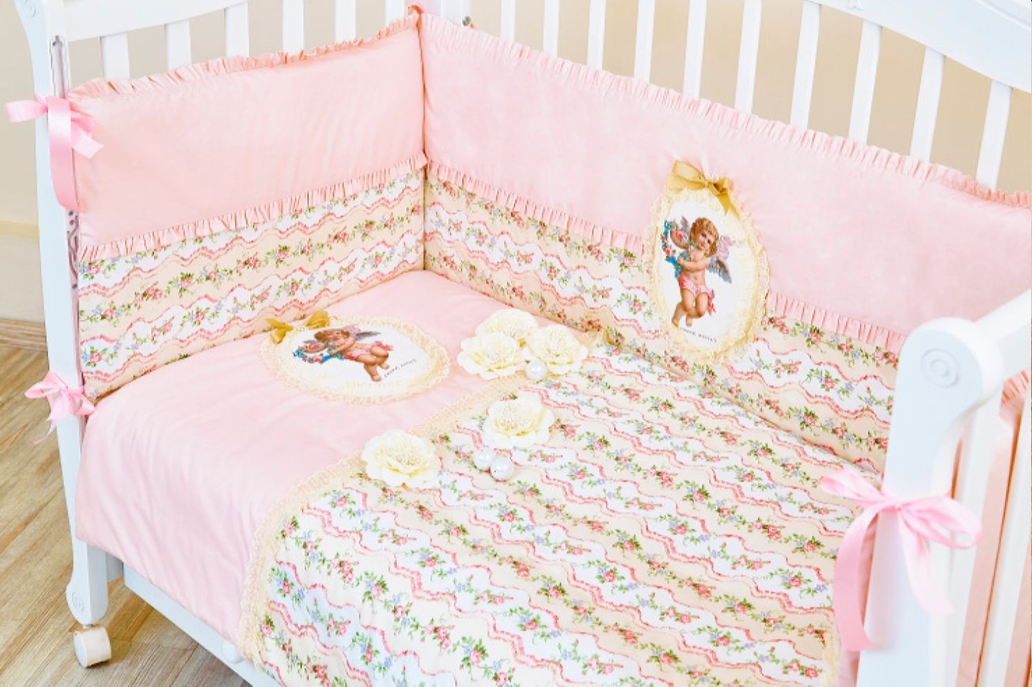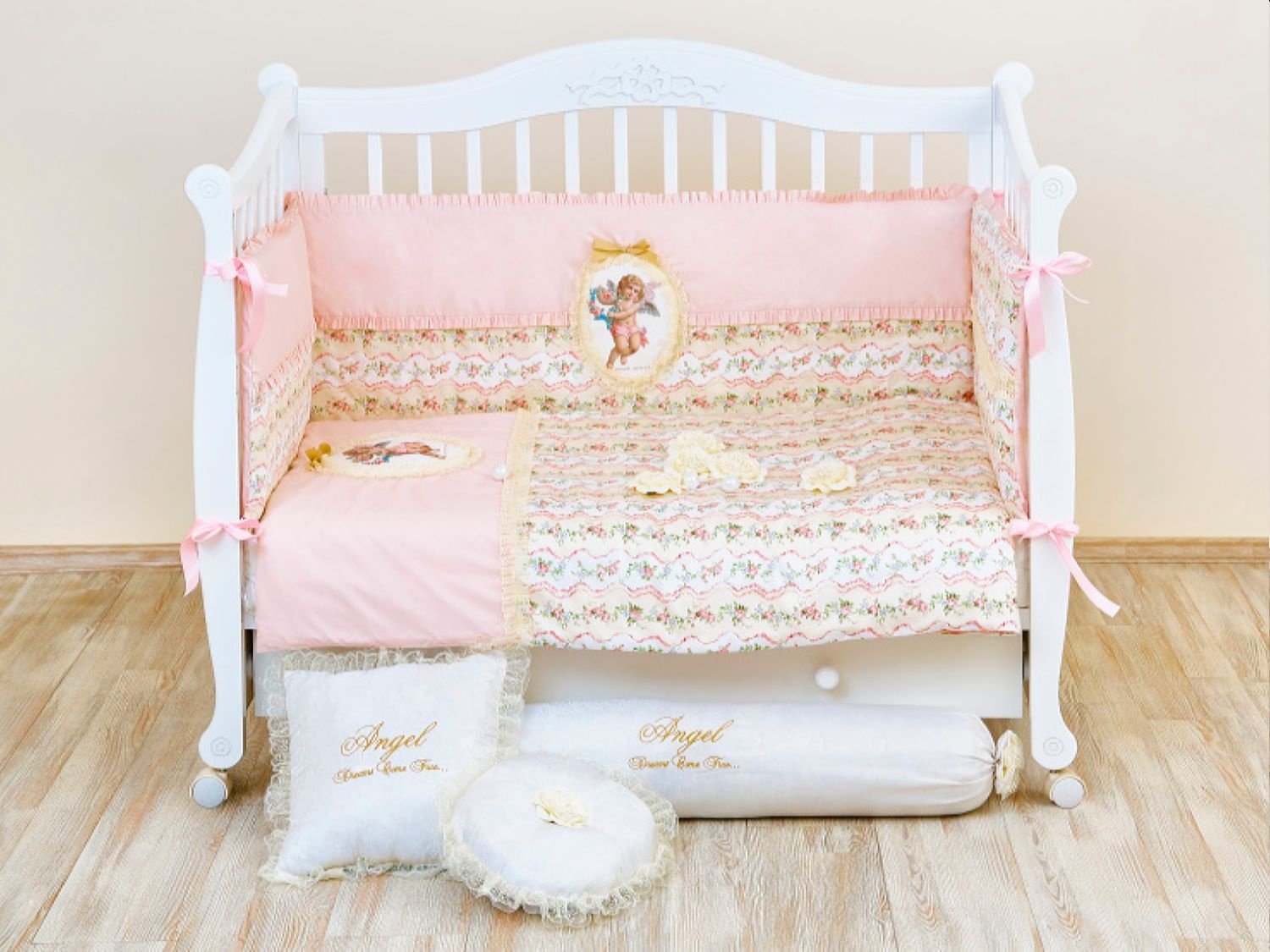 Приятные особенности:Комплект для девочек в розовых тонах приятно удивит вас необычным дизайном. Нежные картинки ангела, в обрамлении кружева сделают ложе Вашей маленькой принцессы поистине королевским.