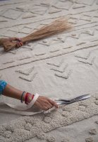 В первые несколько дней после покупки мы рекомендуем расчесывать ковер жесткой щеткой по направлению волокон. Не волнуйтесь, если заметите катышки на поверхности ковра. Это остатки волокон после состригания хлопка, они легко удаляются и повторно не возникают.В дальнейшем для регулярного ухода используйте пылесос.Выбивайте ковер в горизонтальном положении, разложив его на полу ворсом вниз. После процедуры соберите пыль и остатки ворса с пола с помощью пылесоса. Выбивать ковер в подвешенном состоянии не рекомендуется, чтобы не вызвать деформацию.При обнаружении торчащих нитей аккуратно обрежьте их ножницами. Никогда не тяните за нити.