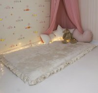 Приятные особенности: Прямоугольный пуф ковер с рюшами из моющегося антивандального краш-велюра. Цвет молочный. Ковер возможно стирать в машине при очень сильном загрязнении, благодаря съемному чехлу. Внутреннее наполнение в чехле листовой синтепон. Антивандальный материал не потеряет своего нежнейшего красивого первоначального вида многие годы. Ковер пуф идеально разместиться в детскую или спальную комнату. Размер 220*160 см толщина 4 см, цвета возможно на выбор под заказ.
