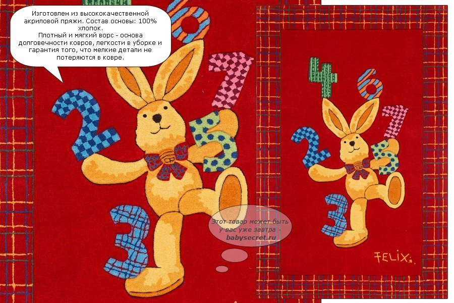 Приятные особенности ковра Spiegelburg:ковер от Boeing Carpet (совместноепроизводство с Spiegelburg) станет отличным украшением комнаты Вашего ребенка. Благодаря высококачественной ручной работе и использованию акриловых волокон высочайшего качества вы будете поражены его высокими функциональными характеристиками. Объемная вышивка с филигранными контурами делает рисунок по-особенному живым и выразительным. При производстве ковра использовано специальное антибактериальное покрытие, содержащее хитозан, и нейтрализующее неприятные запахи волокна. Сертификат Текс Стандарт 100 – высочайший знак доверия к текстилю во всем мире.