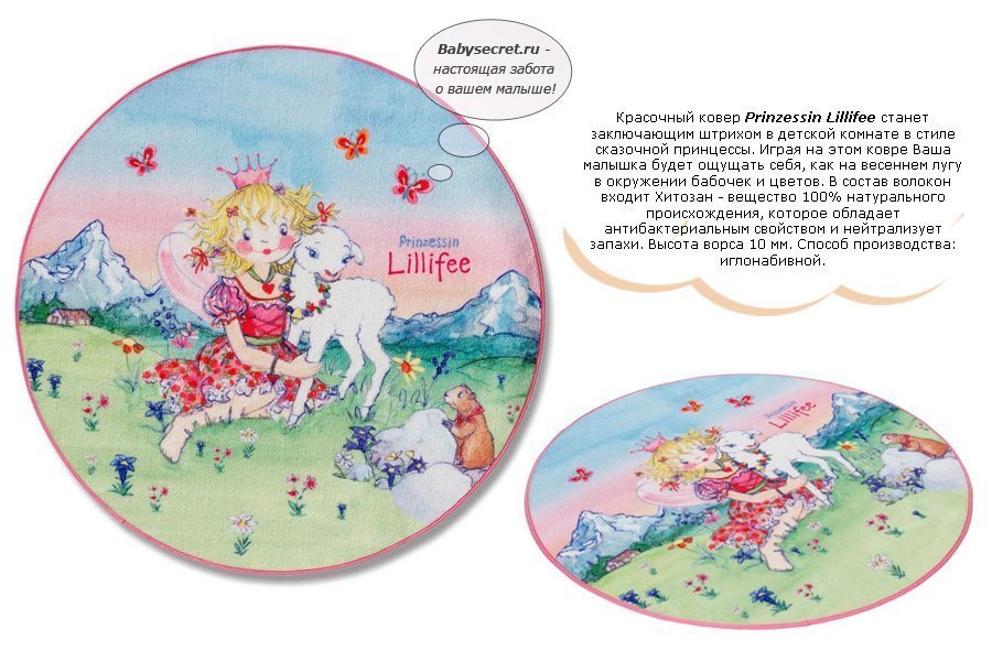 Приятные особенности ковра Spiegelburg Prinzessin Lillifee 102-100R/130R:ковер Prinzessin Lillifee станет заключающим штрихом в детской комнате в стиле сказочной принцессы. Играя на этом ковре Ваша малышка будет ощущать себя, как на весеннем лугу в окружении бабочек и цветов. Всостав волокон входит Хитозан - вещество 100% натурального происхождения, которое обладает антибактериальным свойством и нейтрализует запахи. Высота ворса 10 мм. Способ производства: иглонабивной. Сертификат Текс Стандарт 100 – высочайший знак доверия к текстилю во всем мире.
